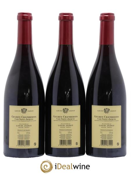 Der Gevrey-Chambertin Premier Cru des Clos Saint-Jacques des Weinguts Louis Jadot ist ein Wein von großer Komplexität der sich ziemlich fleischig zeigt. Seine schöne Struktur erlaubt vor allem Assoziationen mit Wild und Pilzgerichten. Seine Eigenschaften und seine Kraft ermöglichen eine Aufbewahrung von bis zu 20 Jahren, die großen Jahrgänge können sogar länger ruhen.