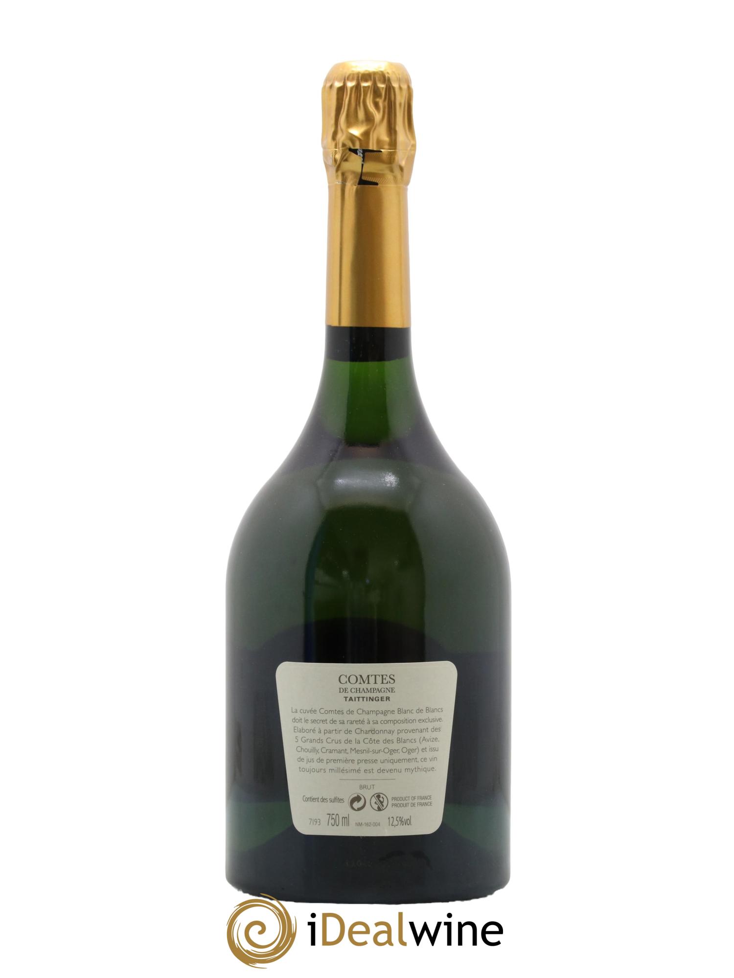 As a tribute to Thibault IV, King of Navarre and last Count 5Comte, in French) of Champagne (the reign of St. Louis) that the house Taittinger created this exceptional cuvée in 1952. Developed in the cellars of the former Abbey of Saint-Nicaise in Reims (thirteenth century), the cuvée "Comtes de Champagne" benefits from a series of attentive care and is produced only when the following conditions, particular to its specificity, are met: when the harvest is of exceptional quality and worthy of vintage. It is made exclusively from white Chardonnay grapes, from the most famous vineyards of the Côte des Blancs. Only the first pressed wine is used, guaranteeing absolute finesse. 5% of the wines used in its composition have been aged in oak barrels (renewed by thirds every year), which enhances the intrinsic qualities of the final blend. It displays a pale gold colour. The fine bouquet is delicately floral and lemony. This Champagne exudes scents of fresh hazelnut, interlaced with notes of brioche. The Comtes de Champagne is an elegant and complex wine that reveals after a few years a tremendous richness.