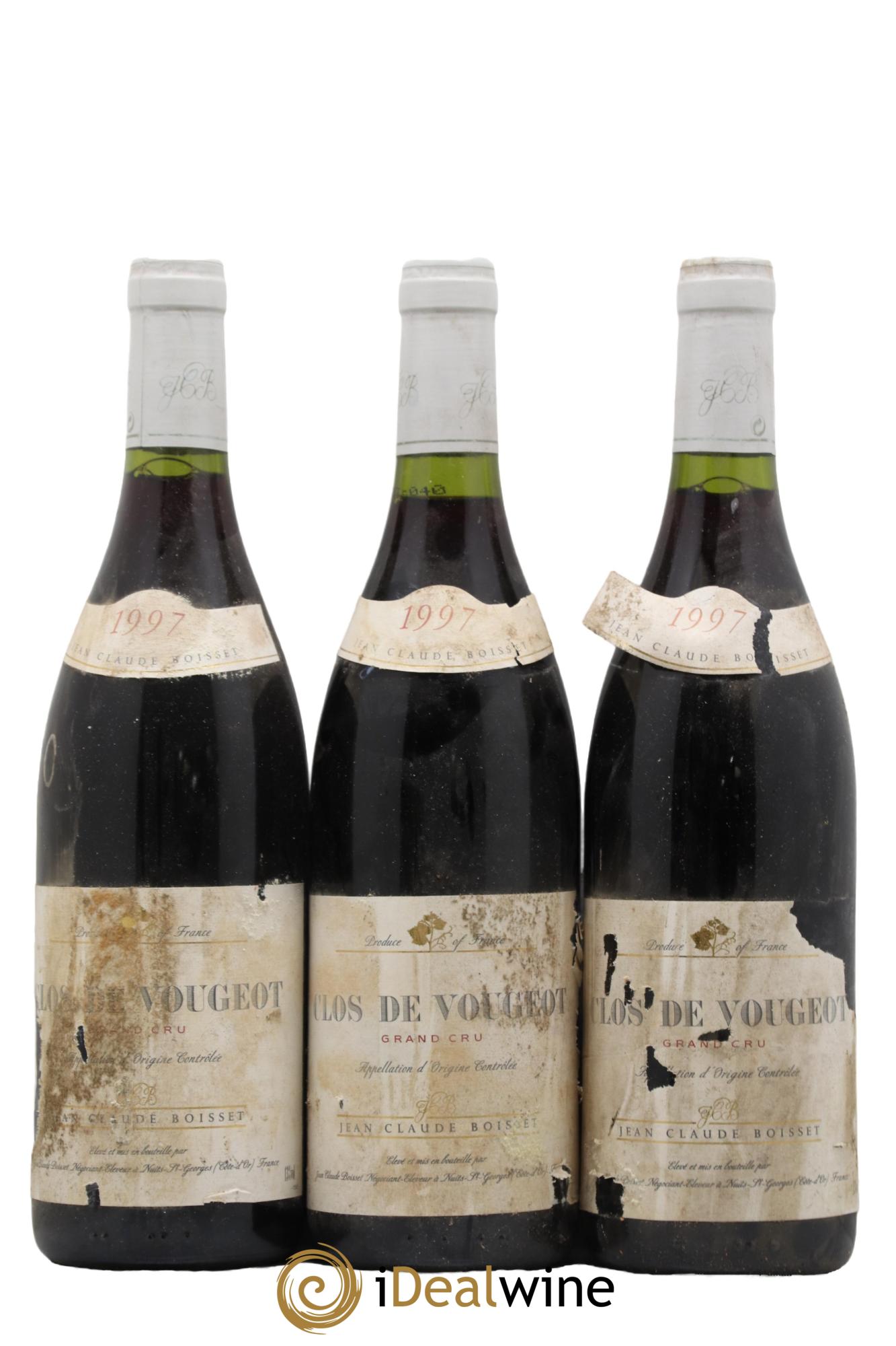 Quantity: 3 bottlesObservations: 3 Marked labels, 3 Highly worn labels, 3 Stained labelsLevel: 3 NormalOrigin: private individualRecoverable VAT: noRegion: BurgundyAppellation: Clos de VougeotClassification: Grand CruOwner: Jean-Claude Boisset