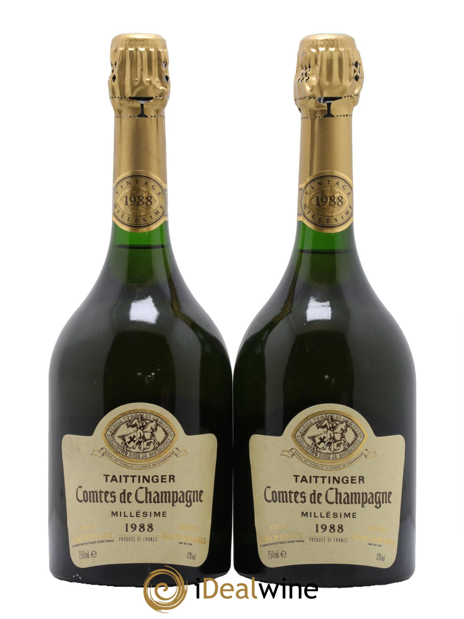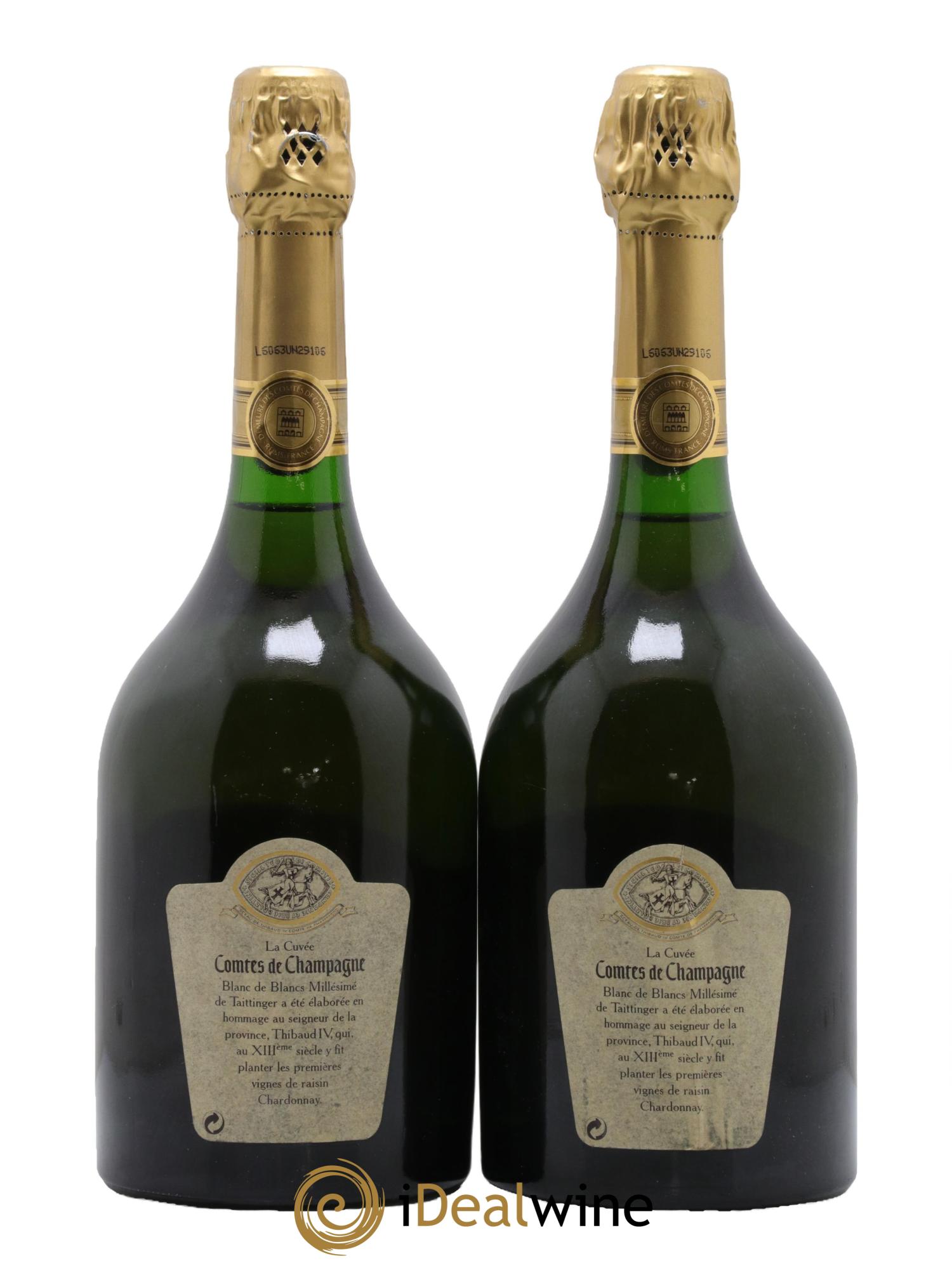 As a tribute to Thibault IV, King of Navarre and last Count 5Comte, in French) of Champagne (the reign of St. Louis) that the house Taittinger created this exceptional cuvée in 1952. Developed in the cellars of the former Abbey of Saint-Nicaise in Reims (thirteenth century), the cuvée "Comtes de Champagne" benefits from a series of attentive care and is produced only when the following conditions, particular to its specificity, are met: when the harvest is of exceptional quality and worthy of vintage. It is made exclusively from white Chardonnay grapes, from the most famous vineyards of the Côte des Blancs. Only the first pressed wine is used, guaranteeing absolute finesse. 5% of the wines used in its composition have been aged in oak barrels (renewed by thirds every year), which enhances the intrinsic qualities of the final blend. It displays a pale gold colour. The fine bouquet is delicately floral and lemony. This Champagne exudes scents of fresh hazelnut, interlaced with notes of brioche. The Comtes de Champagne is an elegant and complex wine that reveals after a few years a tremendous richness.