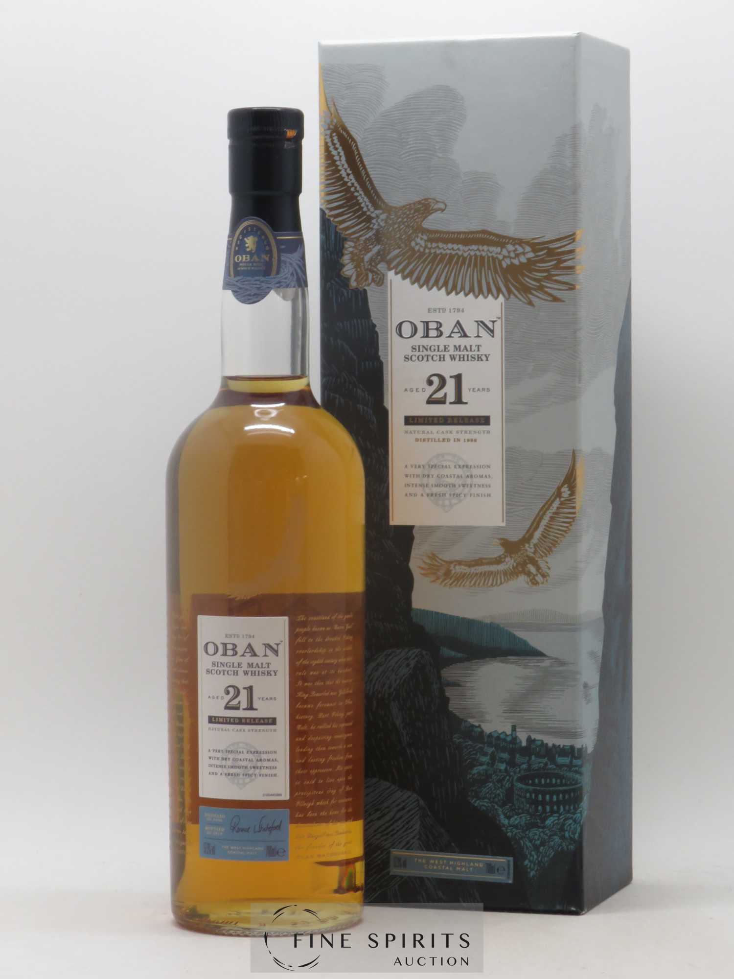 An Oban 21 year old distilled in 1996 and bottled at cask strength in 2018, matured in refill European oak butts. This bottling is part of Diageo’’s Special Releases, a range released annually that highlights some of the finest whiskies of the group’’s open and closed distilleries.