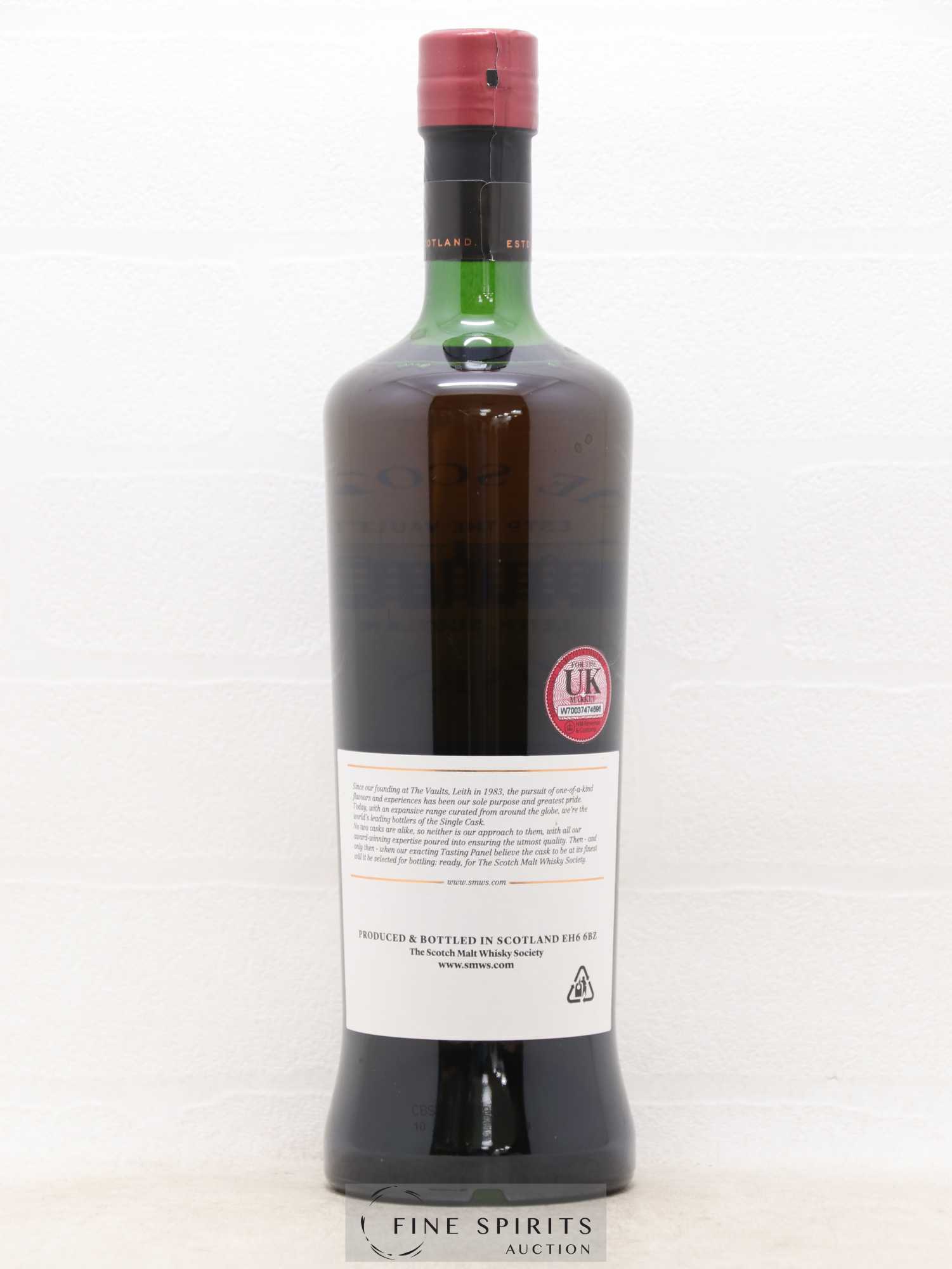 A Loch Lomond distilled in 2001 and bottled in 2018, matured for 16 years in a refill bourbon hogshead. This is a limited edition of 282 bottles for the Scotch Malt Whisky Society. The Scotch Malt Whisky Society (SMWS) was founded in Edinburgh in 1983 by a group of friends with a particular passion for whisky. The club selects casks whose bottles are then only available to members. The name of the distillery is not mentioned on the label but each distillery is given a number as the malt is bottled. The first cask selected by the SMWS, for example, was Glenfarclas, and it therefore uses the number 1. The second number refers to the number of bottlings from each distillery. The club was sold to Glenmorangie in 2004 and then to a group of investors in 2016.