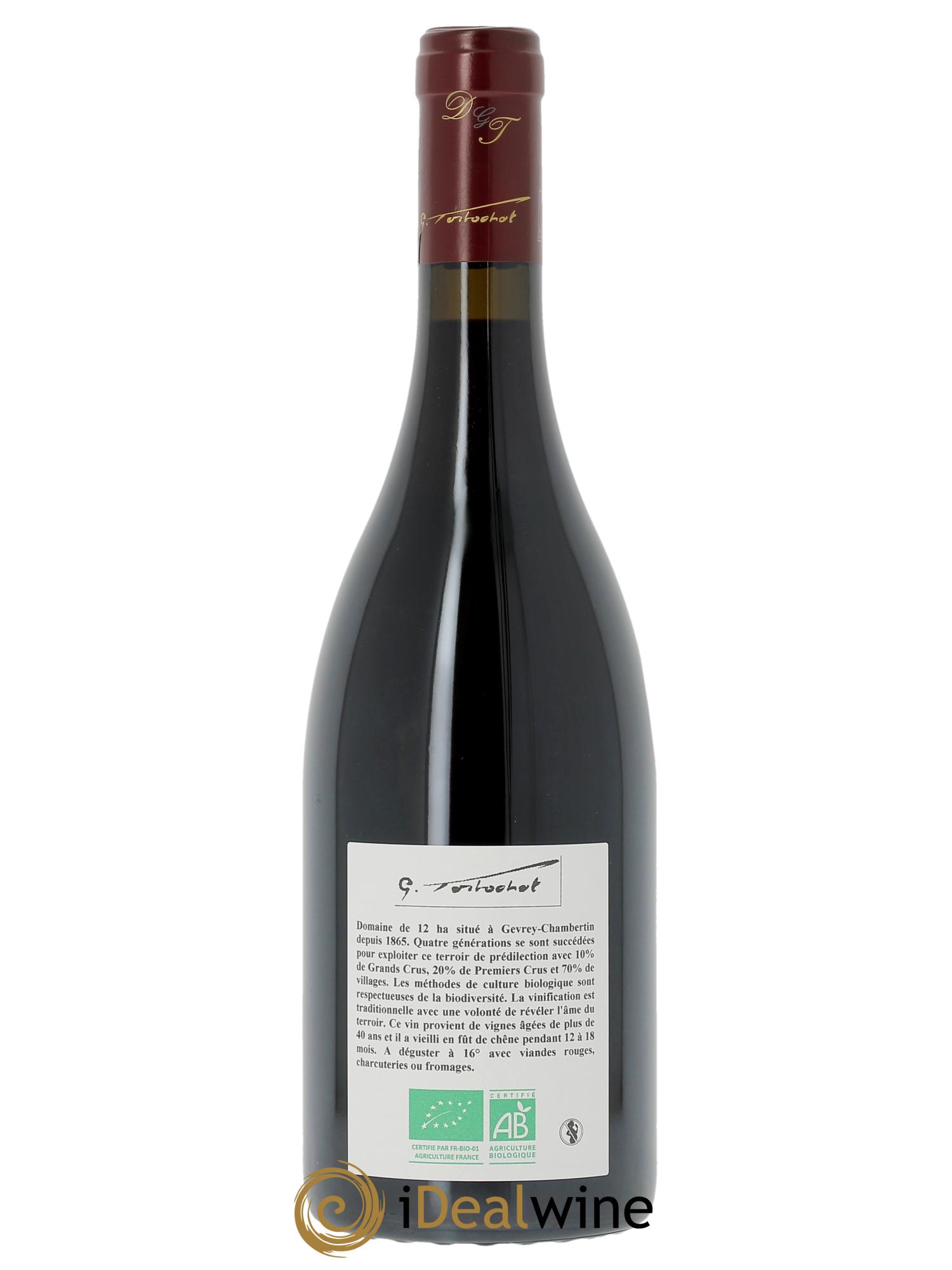 Plus d'infosCe gevrey-chambertin est issu de vieilles vignes du domaine réputé Tortochot. Celui-ci s’étend surf 11 hectare planté en pinot noir, âgé en moyenne de 40 ans. La production est limitée avec 60000 bouteilles annuelles. Le travail à la vigne est soigné avec notamment une vendange en vert au mois de juillet, limitant le rendement.