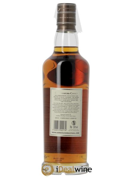 Plus de précision : ce flacon fait partie de la gamme « Connoisseurs Choice » réalisée par Mr George Urquhart en 1968. Il s’agit de 2 000 embouteillages issus d’une centaine de distilleries écossaises différentes. Ces single casks sont toujours non filtrés à froid et produits en petite quantité.