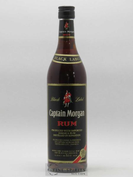 Rhum Captain Morgan Black Label des années 1980 importé en Italie par René Briand, à Milan. Ce rhum est élaboré à partir de rhum jamaïcain - mis en avant sur l'étiquette - mais aussi de rhums du Guyana et de la Barbade.