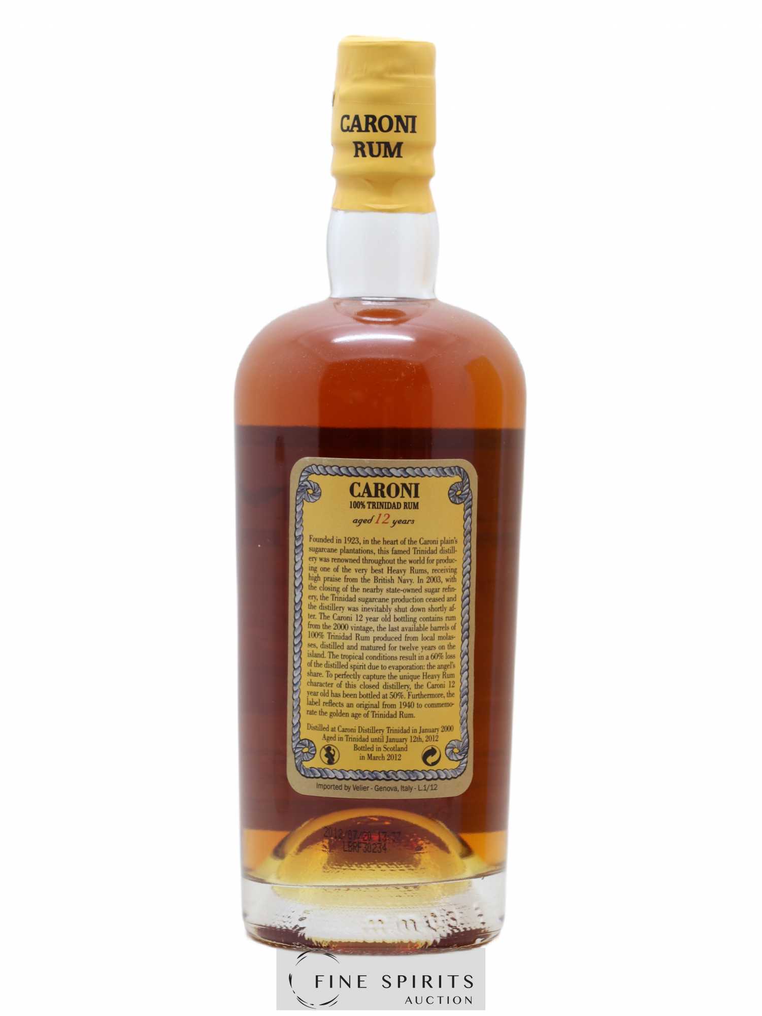 Rhum de mélasse issue de cannes à sucre de Trinidad, distillé en janvier 2000 au sein de la distillerie Caroni (fermée en 2003) et vieilli sur l'île de Trinidad jusqu'au 12 janvier 2012. Une mise en bouteille réalisée en mars 2012 en Ecosse par la société italienne Velier (propriétaire des derniers stocks de rhum de la distillerie et de la marque Caroni). Edition limité à environ 30000 bouteilles pour le monde.