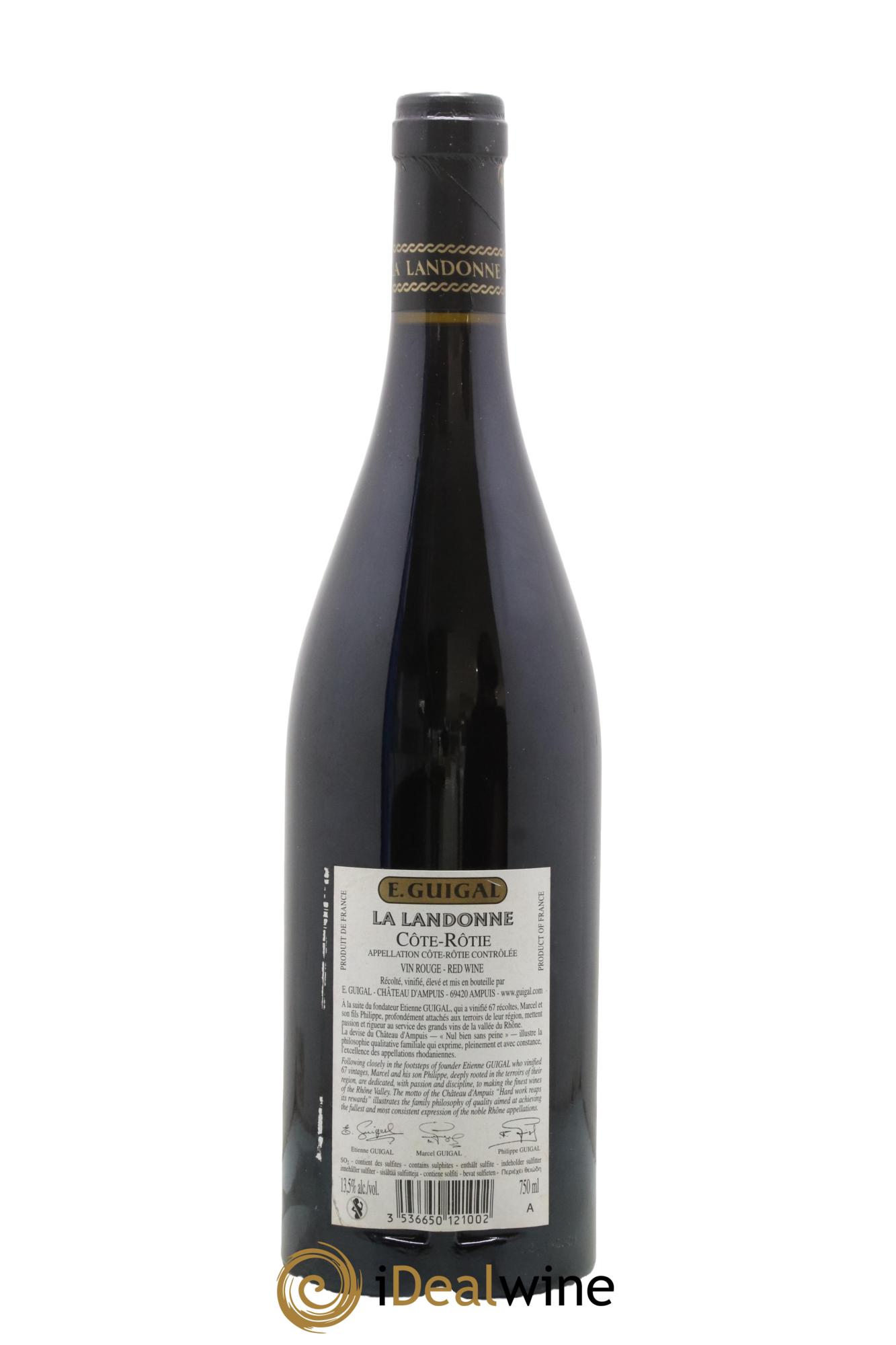 La Landonne è una delle tre cuvée che compongono la mitica "trilogia" di Guigal, molto ricercata dagli appassionati. Dopo qualche anno, si distingue all'olfatto per i suoi caratteristici e inimitabili sentori di tartufo.