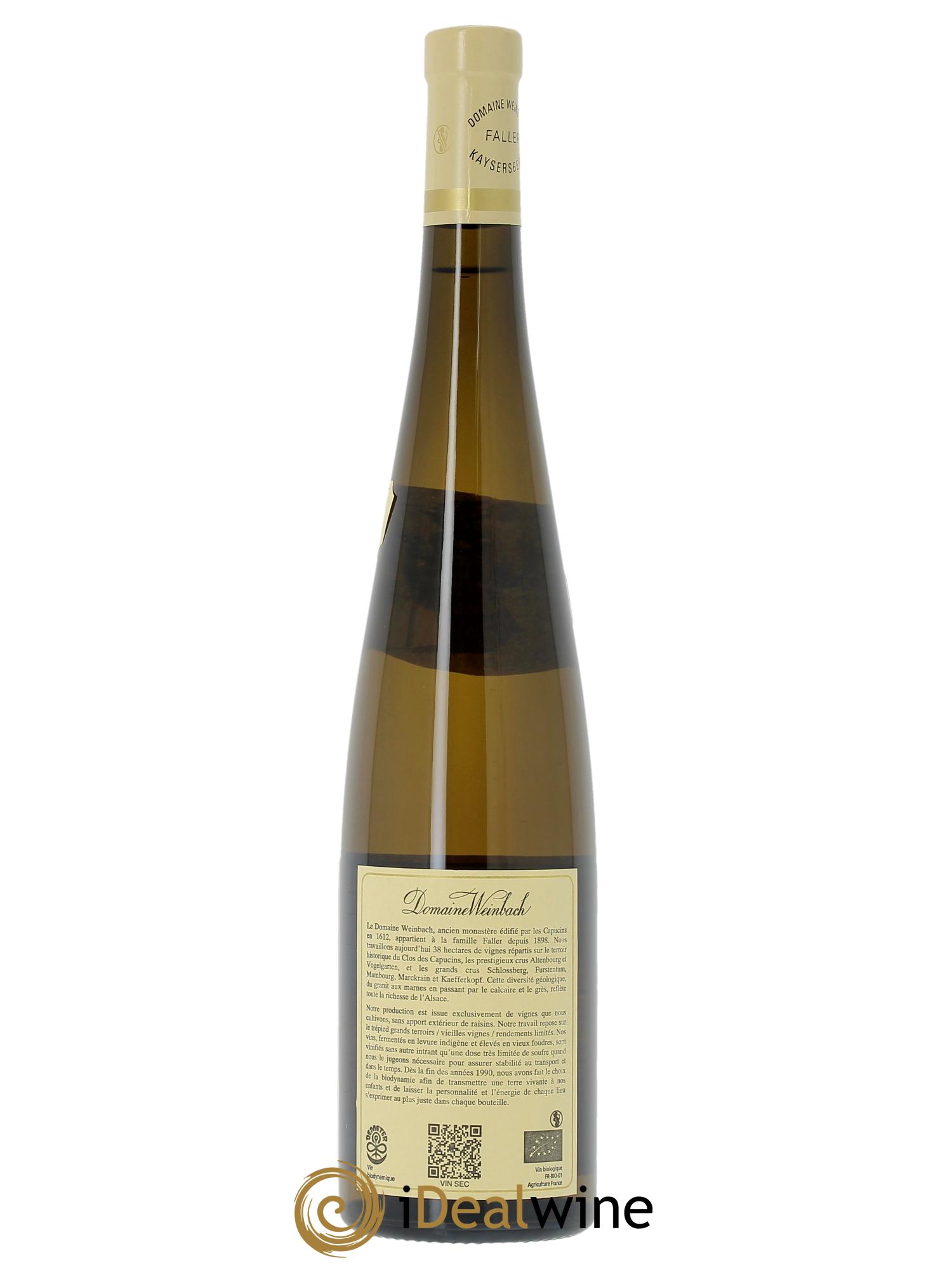 Situata ai piedi della maestosa collina dello Schlossberg, la tenuta Weinbach gode di una posizione eccezionale, che presenta tutte le caratteristiche geologiche e climatiche in grado di favorire la produzione dei migliori vini d’Alsazia. Sullo storico terroir del Clos des Capucins (5 ettari circondati da mura), i monaci Cappuccini producevano vino fin dall'inizio del XVII secolo. La tenuta fu venduta come proprietà nazionale durante la Rivoluzione francese e acquisita nel 1898 dai fratelli Faller. La proprietà è stata in seguito trasmessa ai loro discendenti, che hanno contribuito all'ascesa della tenuta e all’affermazione della sua reputazione in Francia e all'estero. Ricordiamo in particolare la figura di Theo, scomparso nel 1979, molto impegnato nella valorizzazione del vigneto alsaziano, che con la sua attività ha favorito il riconoscimento della denominazione AOC. Oggi la tenuta è gestita da Catherine Faller, che si avvale dell’aiuto dei figli Eddy e Théo. Il vigneto si estende su 38 ettari distribuiti nella Valle di Kaysersberg, tra il terroir storico del Clos des Capucins, i prestigiosi Cru Altenbourg e Vogelgarten, e i Grand Cru Schlossberg, Furstentum, Mambourg, Marckrain e Kaefferkopf. La diversità geologica di questo territorio, con terreni di granito, marna, calcare e arenaria, riflette l'incredibile ricchezza alsaziana. La coltivazione delle vigne è caratterizzata dal rispetto per la natura e per l'espressione di ogni terroir. Alla fine degli anni ‘90 la tenuta si è orientata verso la viticoltura biodinamica in modo che la personalità di ogni singola parcella potesse esprimersi al meglio. La vendemmia avviene solo a maturità ottimale, la selezione è meticolosa, la pigiatura delicata e progressiva, la fermentazione è lunga e avviene in vecchie botti di rovere. La tenuta produce cuvée classiche di grande qualità, ma si distingue particolarmente per le grandi cuvée che portano i nomi dei membri della famiglia, associati ad ogni terroir.