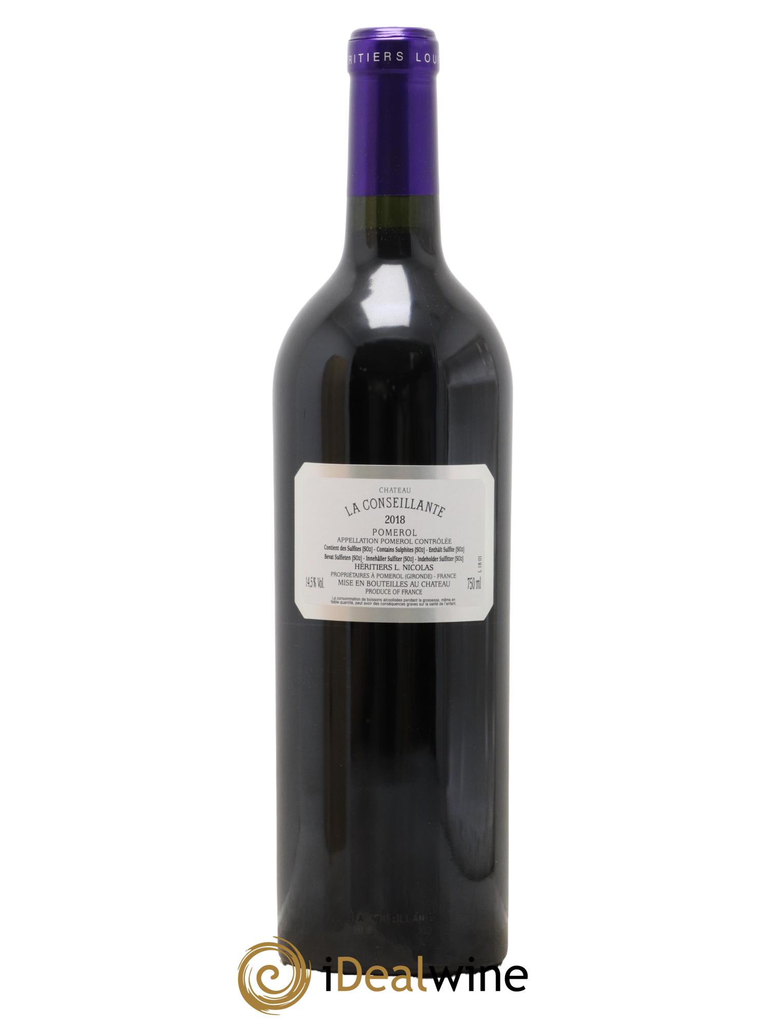 Eleganza, finezza e raffinatezza sono le parole più adatte per descrivere questo vino prodotto in una tenuta situata a est di Pomerol, molto vicino alla zona di Saint-Émilion. Il vigneto de La Conseillante, tra i più antichi dell'altopiano del Pomerol, prende il nome da Catherine Conseillan, proprietaria nel XVIII secolo. Dal 1871 appartiene alla famiglia Nicolas, che di generazione in generazione, porta avanti la tradizione e ne mantiene la qualità ai massimi livelli. I 12 ettari di vigneto comprendono due parcelle dalle caratteristiche ben distinte, perfettamente adatte ai due vitigni utilizzati per la realizzazione del vino: la parte nord, dove si coltiva il merlot, è composta da un terreno di argille grigie, che poggia su un sottosuolo di argille rosse, conosciuto con il nome di crasse de fer (sedimentazioni ricche di ossidi di ferro), tipiche del terroir di Petrus. Le parcelle situate a sud della tenuta, vicino alla denominazione Saint-Émilion, sono caratterizzate dalla presenza di suoli ghiaiosi e sabbiosi, particolarmente vocati per il cabernet franc, vitigno di riferimento per il rinomato vicino Château Cheval Blanc. La gestione parcellare delle uve è rispettata in tutte le fasi della vinificazione. I vini maturano per quasi due anni in barrique. La percentuale di legno nuovo varia dal 60 al 100% a seconda delle annate.
