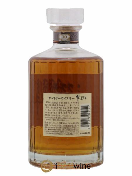 Hibiki 17 anni è stato prodotto nel 1989 dal Master Blender Keizo Saji e dal Chief Blender Koichi Inatomi per festeggiare i 90 anni di Suntory: è stato proprio Keizo Saji, figlio e successore del fondatore Shinjiro Torii, ad avere avuto questa idea nel 1987. Hibiki 17 è presentato nella mitica bottiglia a 24 sfaccettature che simboleggiano le 24 stagioni del calendario giapponese. Questo distillato è un assemblaggio dei whisky prodotti nelle tre distillerie del gruppo: Yamazaki e Hakusu per i whisky di malto e Chita per i grain whisky. Questa creazione di Keizo Saji è diventata celebre in particolare dopo il film del 2003 “Lost in Translation” di Sofia Coppola, dove il personaggio interpretato da Bill Murray gira uno spot pubblicitario proprio di Hibiki 17 anni. Esistono anche una versione 12 anni, una versione 21 anni e alcune versioni senza dichiarazione d’età. La produzione della versione 17 anni viene interrotta nel 2018 perché le riserve non erano più sufficienti per soddisfare la domanda.