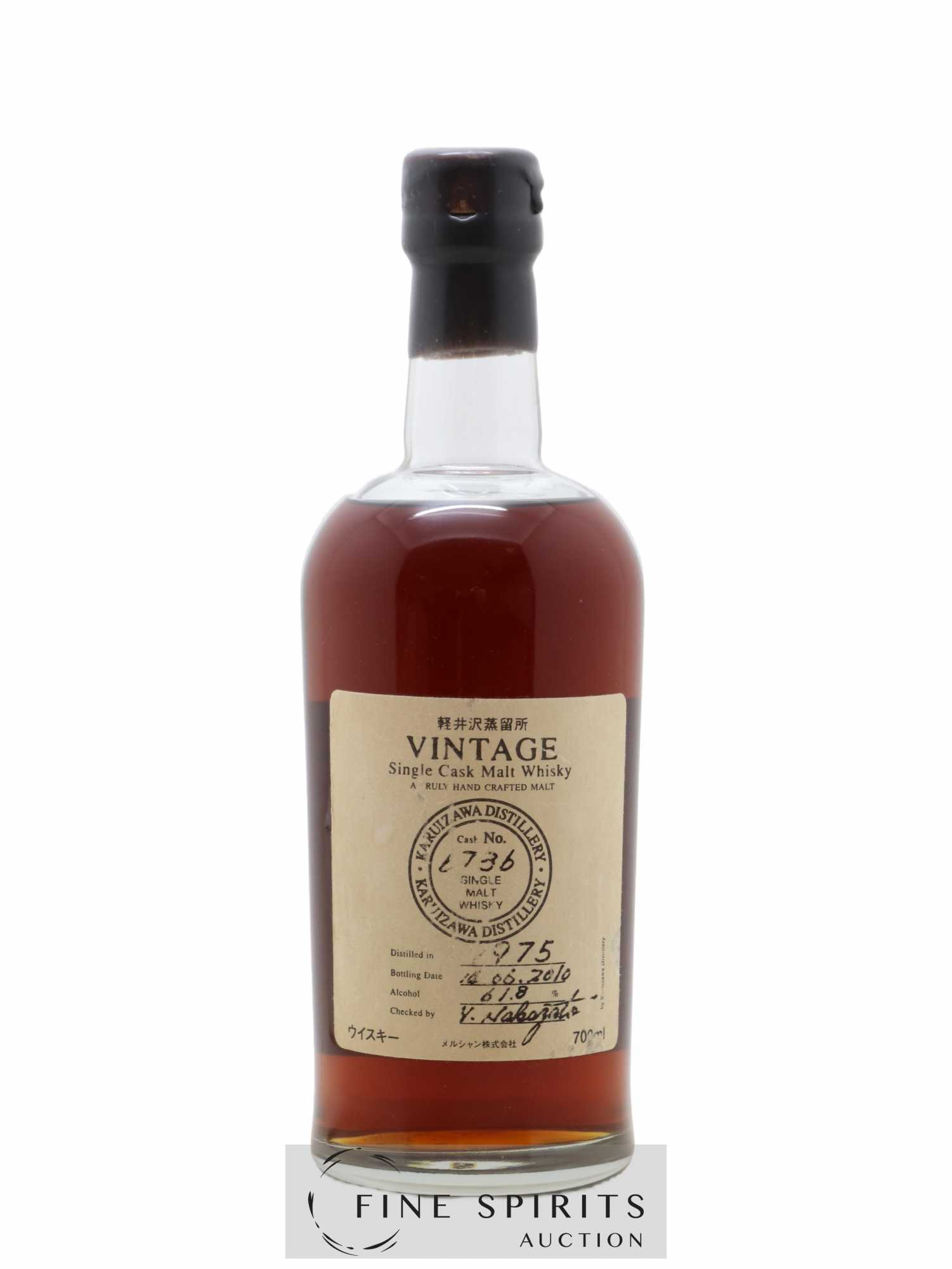 A Karuizawa single cask (#6736) distilled in 1975 and bottled at cask strength in 2010 by Number One Drinks. Number One Drinks was founded in 2006 by David Croll and Marcin Miller, who bought the distillery’’s stocks in 2011. The label provides only basic information, such as when each bottle was filled and hand-labelled for the rare visitors to the distillery.