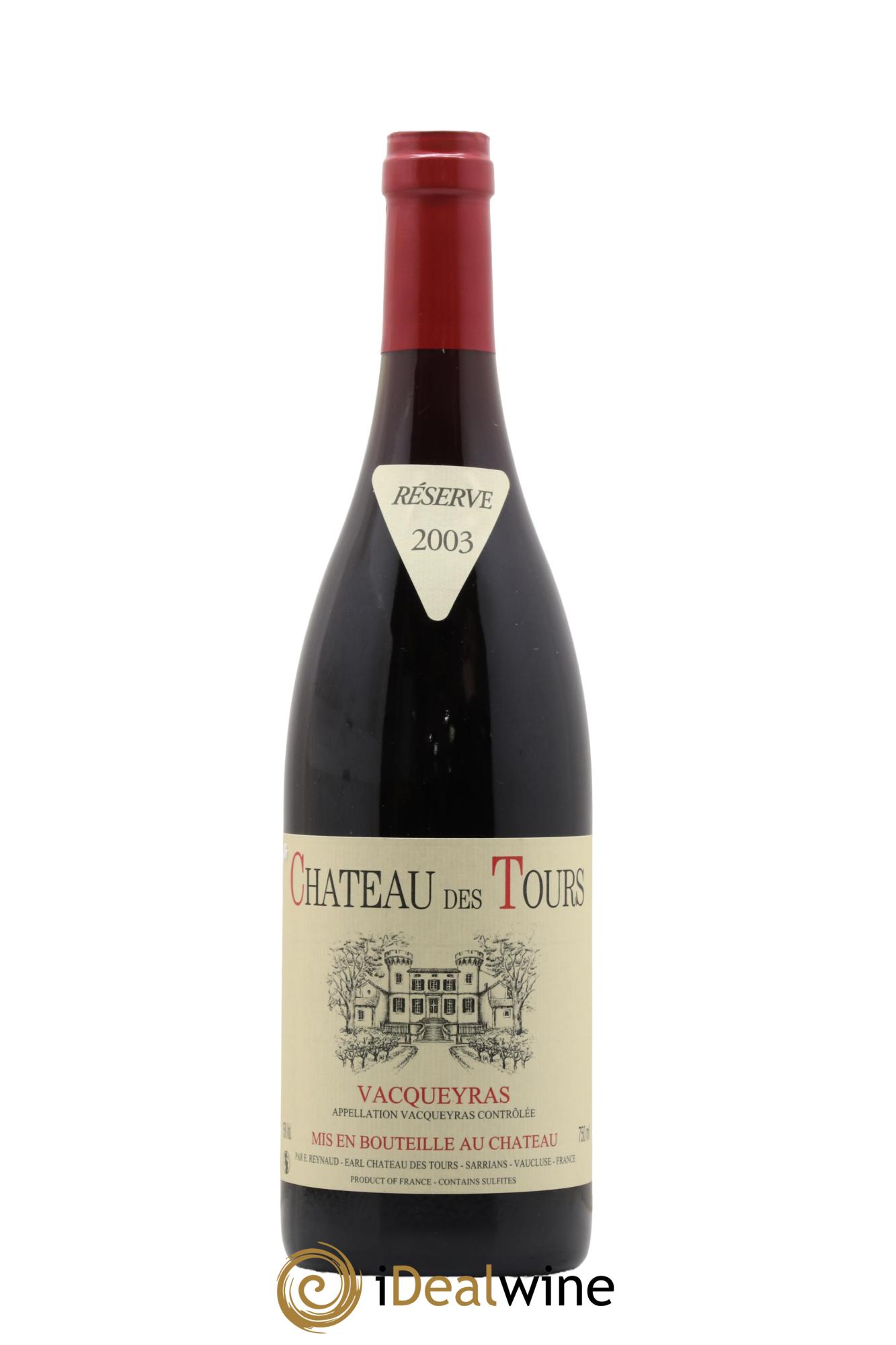 Das Château des Tours, in Sarrians in der Appellation Vacqueyras gelegen, gehört seit 1997 dem berühmten Emmanuel Reynaud, Eigentümer des legendären Château Rayas in Châteauneuf-du-Pape und des Château Fonsalette. Dieses Weingut produziert unter dem Namen Château des Tours auf 40 Hektar einen roten Vacqueyras (80 % Grenache und 20 % Syrah), einen roten Côtes-du-Rhône (65 % Grenache, 15 % Cinsault und 20 % Syrah) und einen weißen Côtes-du-Rhône (100 % Grenache). Unter dem Namen Domaine de Tours wird hier außerdem ein roter Vaucluse-Landwein (Grenache, Counoise, Syrah, Cinsault, Merlot und diverse andere Rebsorten) und ein weißer Vaucluse-Landwein (100 % Clairette) hergestellt. Und zu guter Letzt findet man hier auch einen Rosé-Tafelwein namens „Parisy“, der aus Grenache und Cinsault zusammengestellt ist. In jedem Fall wird den roten und weißen Grenache-Trauben alle Ehre gemacht. Der Weinbau ist von extremer Sorgfalt geprägt und bei der Lese werden große Risiken eingegangen. Tatsächlich werden die Trauben so reif wie möglich geerntet. Dieses Weingut produziert Weine auf höchstem Niveau: Ihre Farbe ist wenig intensiv, aber dennoch sind die Weine extrem tiefgründig, schlank, fruchtig und außergewöhnlich ausgewogen. Besonders bekannt und nachgefragt sind sie für ihre Komplexität und ihr Reifepotenzial. Wissenswert ist außerdem, dass Flaschen vom einfachen Landwein bis zum Vacqueyras erst nach einigen Jahren der Lagerung am Weingut verkauft werden.