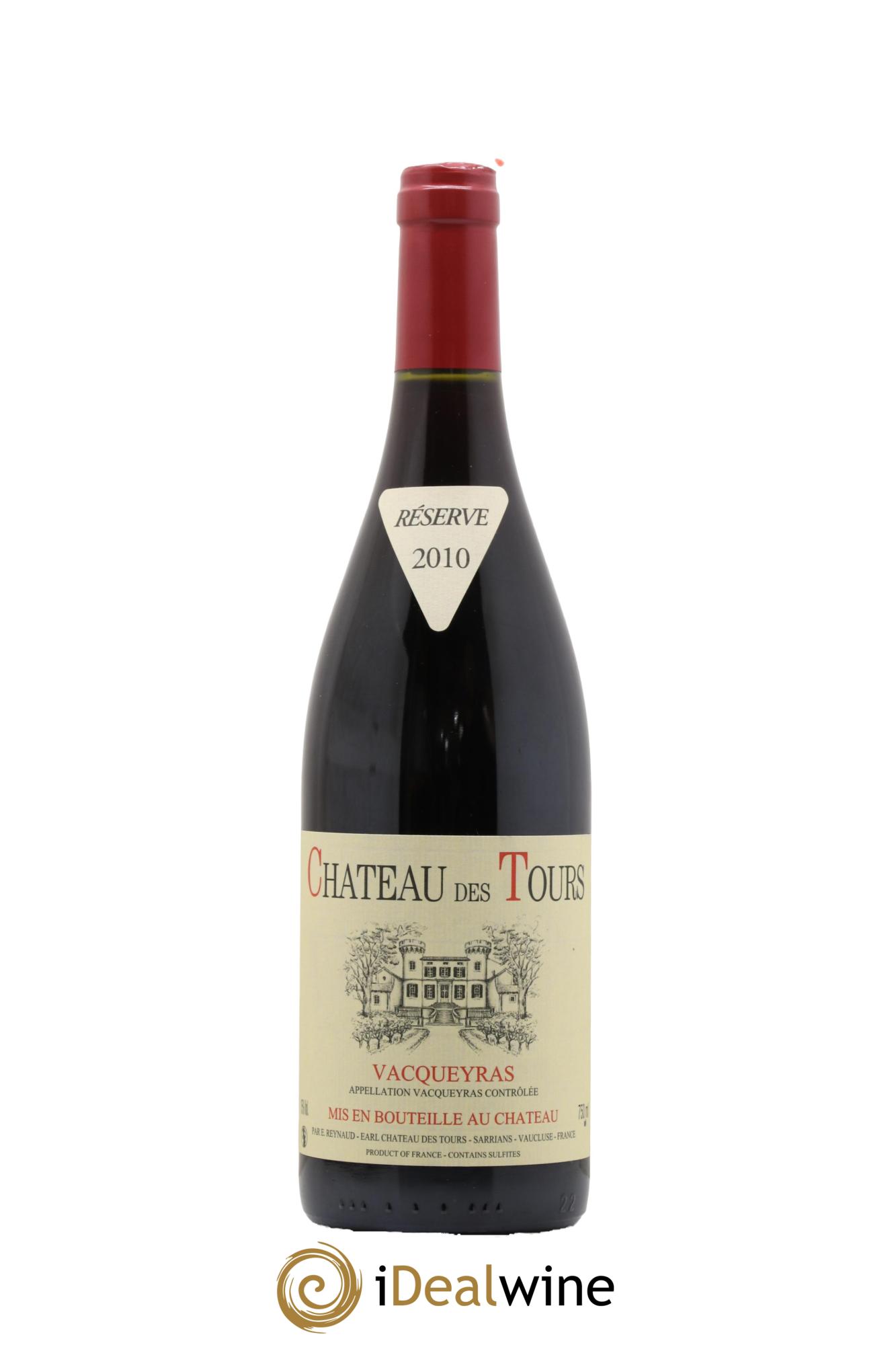 Das Château des Tours, in Sarrians in der Appellation Vacqueyras gelegen, gehört seit 1997 dem berühmten Emmanuel Reynaud, Eigentümer des legendären Château Rayas in Châteauneuf-du-Pape und des Château Fonsalette. Dieses Weingut produziert unter dem Namen Château des Tours auf 40 Hektar einen roten Vacqueyras (80 % Grenache und 20 % Syrah), einen roten Côtes-du-Rhône (65 % Grenache, 15 % Cinsault und 20 % Syrah) und einen weißen Côtes-du-Rhône (100 % Grenache). Unter dem Namen Domaine de Tours wird hier außerdem ein roter Vaucluse-Landwein (Grenache, Counoise, Syrah, Cinsault, Merlot und diverse andere Rebsorten) und ein weißer Vaucluse-Landwein (100 % Clairette) hergestellt. Und zu guter Letzt findet man hier auch einen Rosé-Tafelwein namens „Parisy“, der aus Grenache und Cinsault zusammengestellt ist. In jedem Fall wird den roten und weißen Grenache-Trauben alle Ehre gemacht. Der Weinbau ist von extremer Sorgfalt geprägt und bei der Lese werden große Risiken eingegangen. Tatsächlich werden die Trauben so reif wie möglich geerntet. Dieses Weingut produziert Weine auf höchstem Niveau: Ihre Farbe ist wenig intensiv, aber dennoch sind die Weine extrem tiefgründig, schlank, fruchtig und außergewöhnlich ausgewogen. Besonders bekannt und nachgefragt sind sie für ihre Komplexität und ihr Reifepotenzial. Wissenswert ist außerdem, dass Flaschen vom einfachen Landwein bis zum Vacqueyras erst nach einigen Jahren der Lagerung am Weingut verkauft werden.