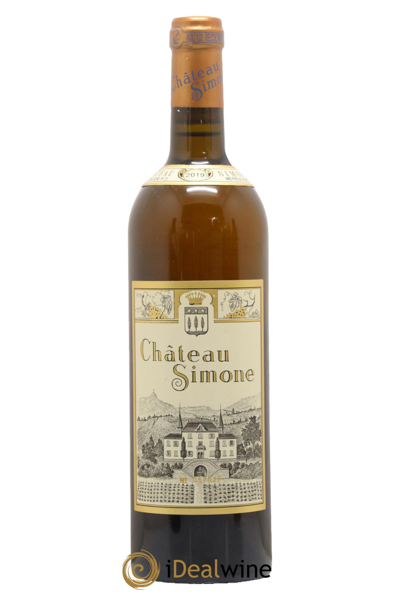 Der Weißwein des Château Simone ist berühmt für seine große Eleganz und sein fantastisches Reifepotenzial. In seiner Jugend zeichnet er sich durch eine goldene Robe und blumige und fruchtige Aromen aus, die sich hin zu einer altgoldenen Färbung und einem kräftigen und feinen Bukett entwickeln. Es handelt sich um eine Assemblage aus Clairette, Grenache Blanc, Ugni Blanc, Bourboulenc und Weißer Muskateller, vollreif und von Hand geerntet. Nach der Sortierung werden die Trauben leicht gepresst und gären mit natürlichen Hefen. Anschließend reift der Wein 18 Monate lang, davon sechs Monate auf der Feinhefe in kleinen Eichenfudern.