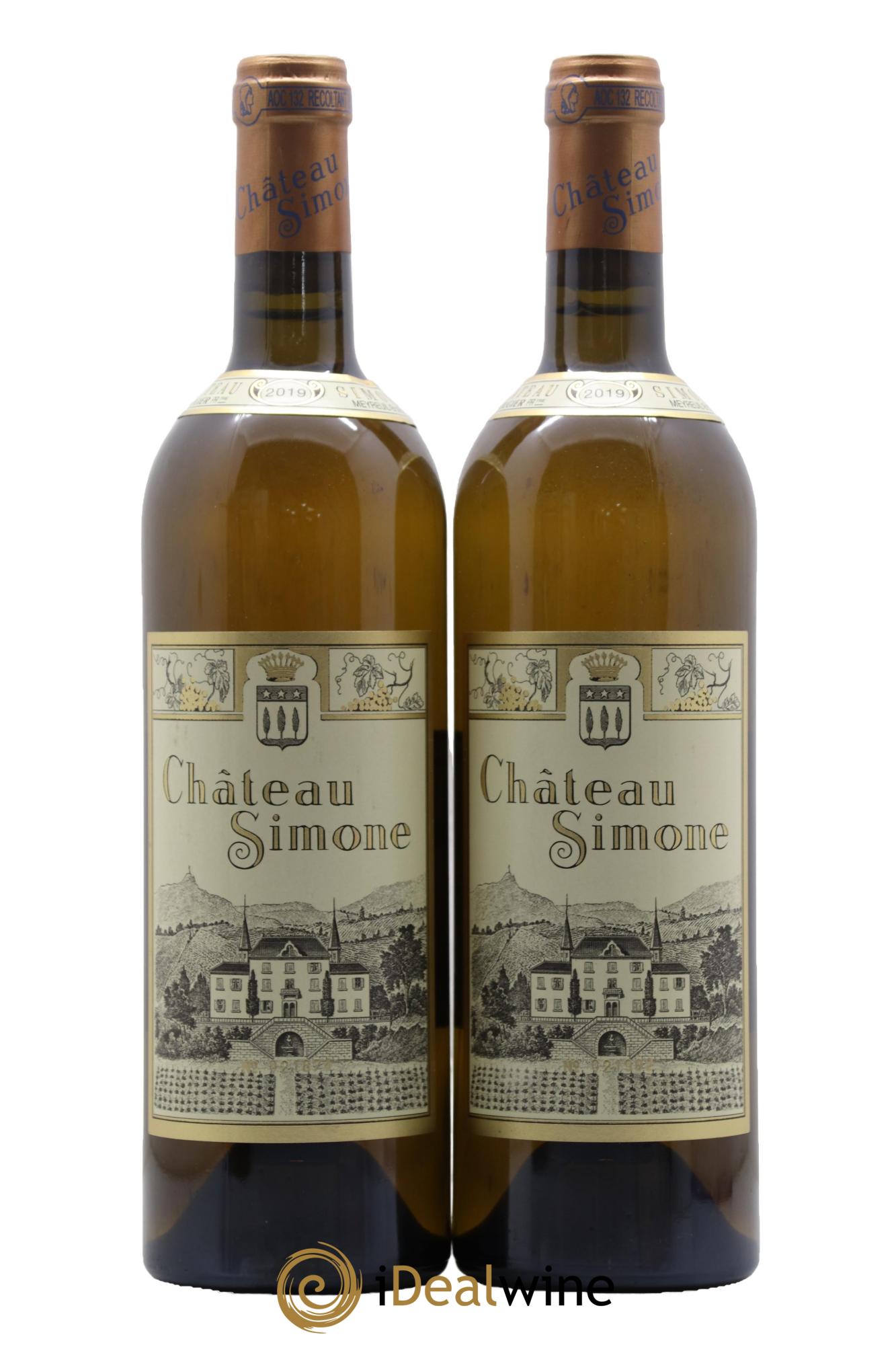 Der Weißwein des Château Simone ist berühmt für seine große Eleganz und sein fantastisches Reifepotenzial. In seiner Jugend zeichnet er sich durch eine goldene Robe und blumige und fruchtige Aromen aus, die sich hin zu einer altgoldenen Färbung und einem kräftigen und feinen Bukett entwickeln. Es handelt sich um eine Assemblage aus Clairette, Grenache Blanc, Ugni Blanc, Bourboulenc und Weißer Muskateller, vollreif und von Hand geerntet. Nach der Sortierung werden die Trauben leicht gepresst und gären mit natürlichen Hefen. Anschließend reift der Wein 18 Monate lang, davon sechs Monate auf der Feinhefe in kleinen Eichenfudern.