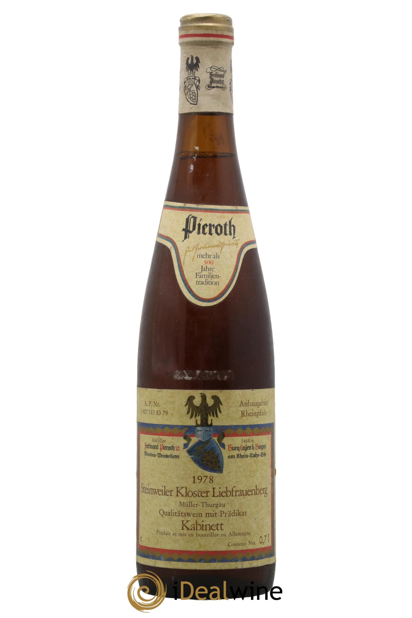 Allemagne Pfalz Muller-Thurgau Kabinett Steinweiller Kloster Liebfrauenberg Pieroth 1978