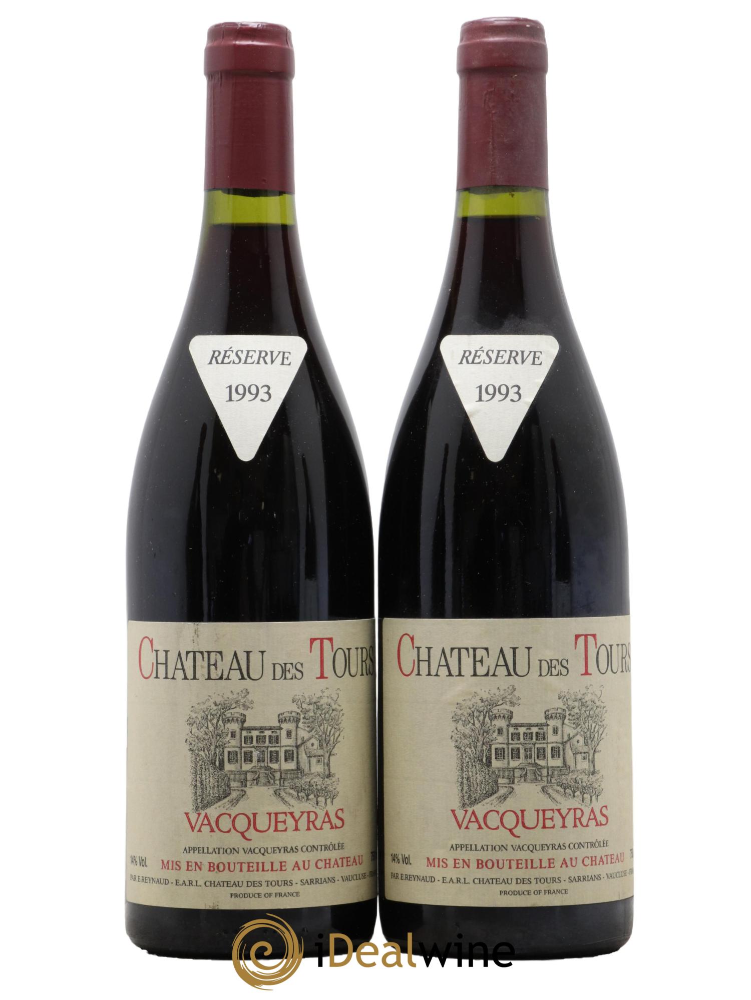 Das Château des Tours, in Sarrians in der Appellation Vacqueyras gelegen, gehört seit 1997 dem berühmten Emmanuel Reynaud, Eigentümer des legendären Château Rayas in Châteauneuf-du-Pape und des Château Fonsalette. Dieses Weingut produziert unter dem Namen Château des Tours auf 40 Hektar einen roten Vacqueyras (80 % Grenache und 20 % Syrah), einen roten Côtes-du-Rhône (65 % Grenache, 15 % Cinsault und 20 % Syrah) und einen weißen Côtes-du-Rhône (100 % Grenache). Unter dem Namen Domaine de Tours wird hier außerdem ein roter Vaucluse-Landwein (Grenache, Counoise, Syrah, Cinsault, Merlot und diverse andere Rebsorten) und ein weißer Vaucluse-Landwein (100 % Clairette) hergestellt. Und zu guter Letzt findet man hier auch einen Rosé-Tafelwein namens „Parisy“, der aus Grenache und Cinsault zusammengestellt ist. In jedem Fall wird den roten und weißen Grenache-Trauben alle Ehre gemacht. Der Weinbau ist von extremer Sorgfalt geprägt und bei der Lese werden große Risiken eingegangen. Tatsächlich werden die Trauben so reif wie möglich geerntet. Dieses Weingut produziert Weine auf höchstem Niveau: Ihre Farbe ist wenig intensiv, aber dennoch sind die Weine extrem tiefgründig, schlank, fruchtig und außergewöhnlich ausgewogen. Besonders bekannt und nachgefragt sind sie für ihre Komplexität und ihr Reifepotenzial. Wissenswert ist außerdem, dass Flaschen vom einfachen Landwein bis zum Vacqueyras erst nach einigen Jahren der Lagerung am Weingut verkauft werden.