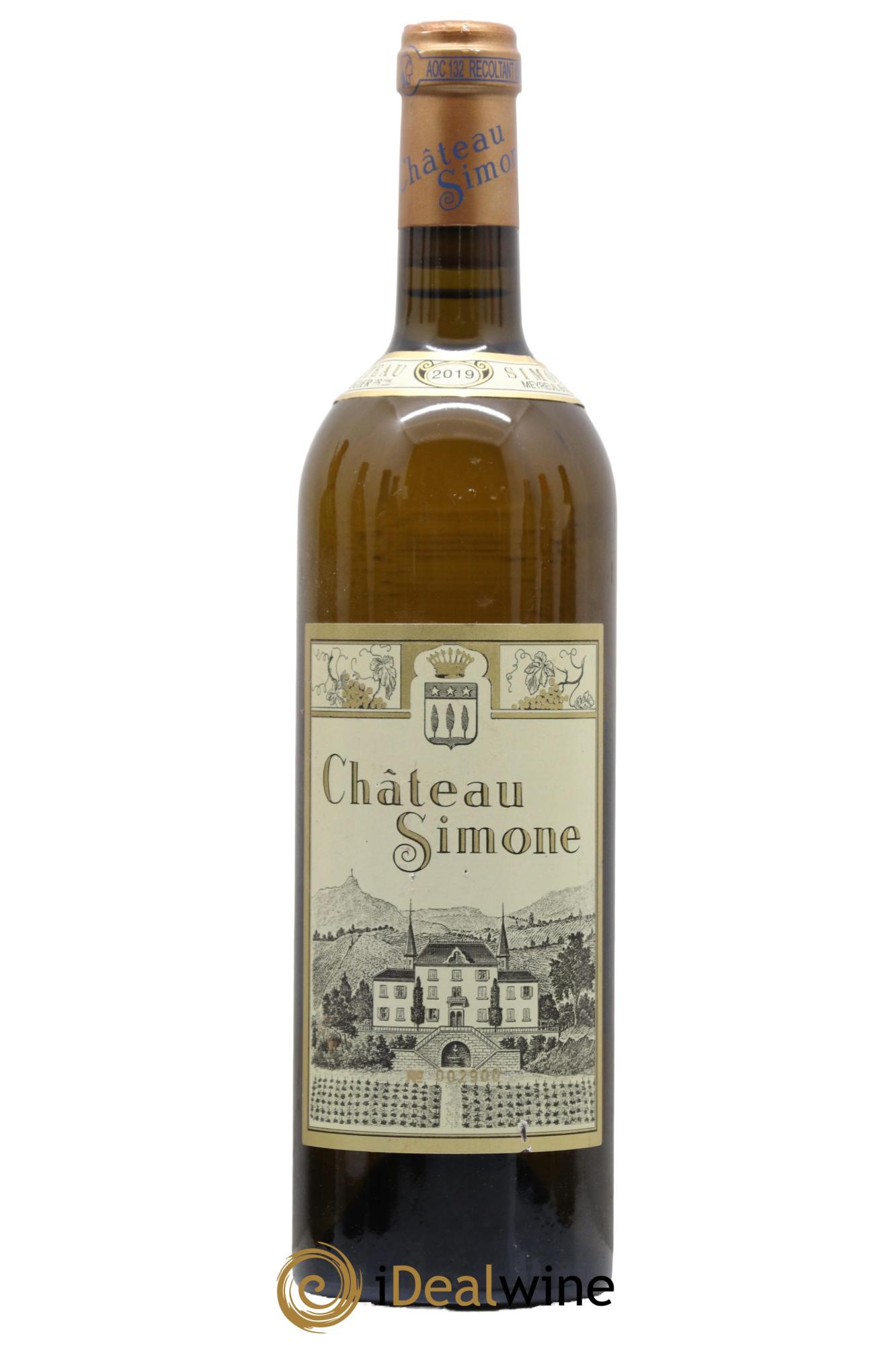 Der Weißwein des Château Simone ist berühmt für seine große Eleganz und sein fantastisches Reifepotenzial. In seiner Jugend zeichnet er sich durch eine goldene Robe und blumige und fruchtige Aromen aus, die sich hin zu einer altgoldenen Färbung und einem kräftigen und feinen Bukett entwickeln. Es handelt sich um eine Assemblage aus Clairette, Grenache Blanc, Ugni Blanc, Bourboulenc und Weißer Muskateller, vollreif und von Hand geerntet. Nach der Sortierung werden die Trauben leicht gepresst und gären mit natürlichen Hefen. Anschließend reift der Wein 18 Monate lang, davon sechs Monate auf der Feinhefe in kleinen Eichenfudern.