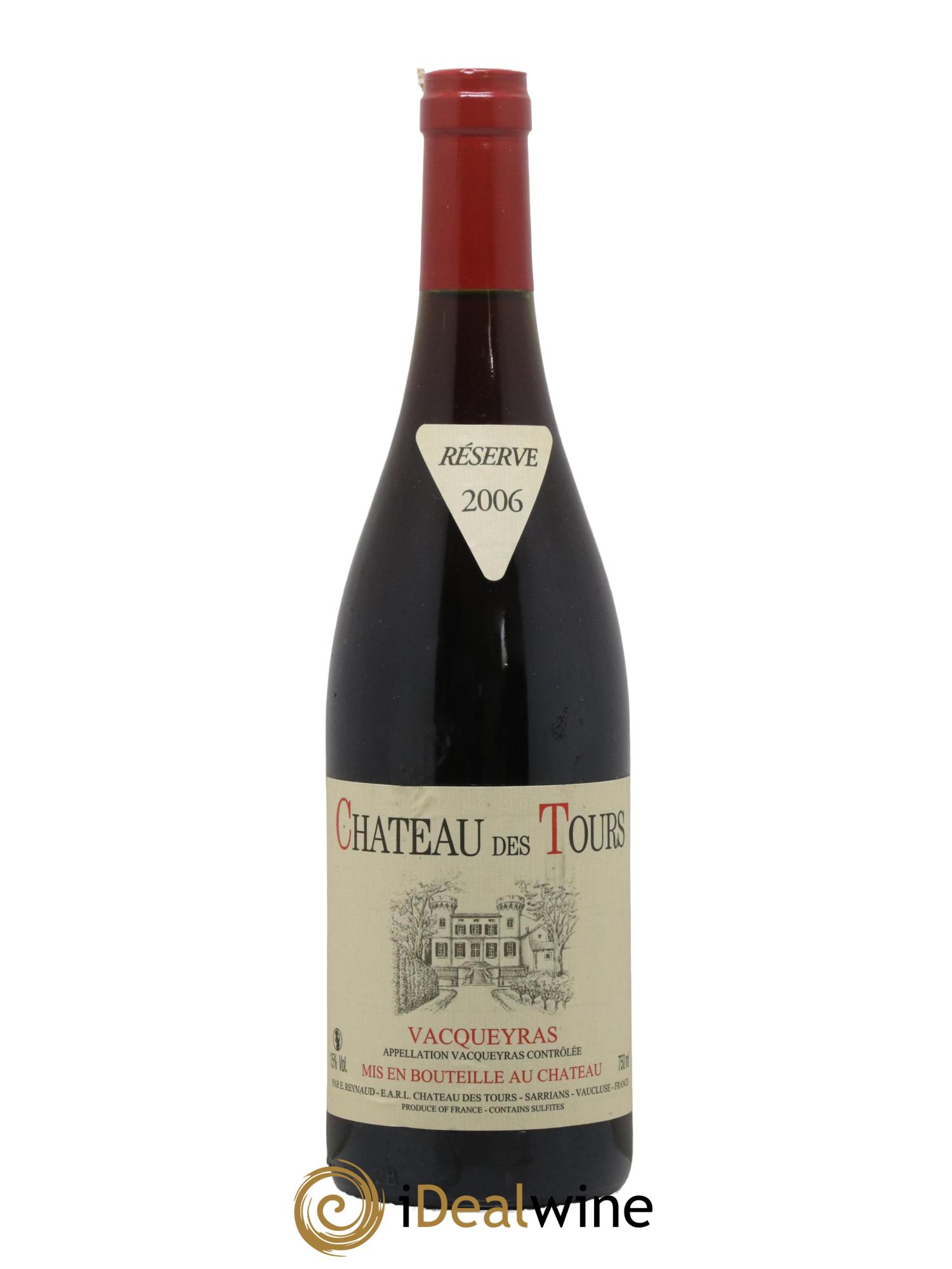Das Château des Tours, in Sarrians in der Appellation Vacqueyras gelegen, gehört seit 1997 dem berühmten Emmanuel Reynaud, Eigentümer des legendären Château Rayas in Châteauneuf-du-Pape und des Château Fonsalette. Dieses Weingut produziert unter dem Namen Château des Tours auf 40 Hektar einen roten Vacqueyras (80 % Grenache und 20 % Syrah), einen roten Côtes-du-Rhône (65 % Grenache, 15 % Cinsault und 20 % Syrah) und einen weißen Côtes-du-Rhône (100 % Grenache). Unter dem Namen Domaine de Tours wird hier außerdem ein roter Vaucluse-Landwein (Grenache, Counoise, Syrah, Cinsault, Merlot und diverse andere Rebsorten) und ein weißer Vaucluse-Landwein (100 % Clairette) hergestellt. Und zu guter Letzt findet man hier auch einen Rosé-Tafelwein namens „Parisy“, der aus Grenache und Cinsault zusammengestellt ist. In jedem Fall wird den roten und weißen Grenache-Trauben alle Ehre gemacht. Der Weinbau ist von extremer Sorgfalt geprägt und bei der Lese werden große Risiken eingegangen. Tatsächlich werden die Trauben so reif wie möglich geerntet. Dieses Weingut produziert Weine auf höchstem Niveau: Ihre Farbe ist wenig intensiv, aber dennoch sind die Weine extrem tiefgründig, schlank, fruchtig und außergewöhnlich ausgewogen. Besonders bekannt und nachgefragt sind sie für ihre Komplexität und ihr Reifepotenzial. Wissenswert ist außerdem, dass Flaschen vom einfachen Landwein bis zum Vacqueyras erst nach einigen Jahren der Lagerung am Weingut verkauft werden.
