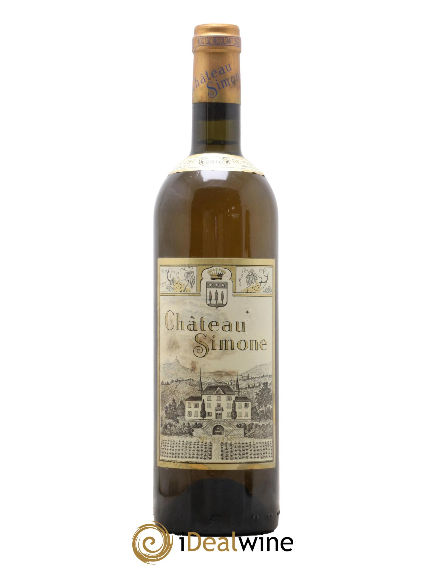 Der Weißwein des Château Simone ist berühmt für seine große Eleganz und sein fantastisches Reifepotenzial. In seiner Jugend zeichnet er sich durch eine goldene Robe und blumige und fruchtige Aromen aus, die sich hin zu einer altgoldenen Färbung und einem kräftigen und feinen Bukett entwickeln. Es handelt sich um eine Assemblage aus Clairette, Grenache Blanc, Ugni Blanc, Bourboulenc und Weißer Muskateller, vollreif und von Hand geerntet. Nach der Sortierung werden die Trauben leicht gepresst und gären mit natürlichen Hefen. Anschließend reift der Wein 18 Monate lang, davon sechs Monate auf der Feinhefe in kleinen Eichenfudern.