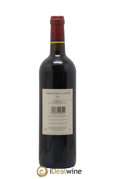 Der Zweitwein des Château Lafite Rothschild genießt zu Recht einen hervorragenden Ruf. Sein Name leitet sich vom Carruades-Plateau ab, welches an das Château Lafite angrenzt und im Jahr 1985 erworben wurde. Der Wein setzt sich hauptsächlich aus Cabernet Sauvignon (je nach Jahrgang bis zu 70 %), zu einem großen Teil aus Merlot (je nach Jahrgang zwischen 30 und 50 %) und zu einem sehr kleinen Teil aus Cabernet Franc und Petit Verdot zusammen. Nach einer Reifezeit zwischen 18 und 20 Monaten in den Fässern des vorherigen Jahrgangs erreicht er eine unglaubliche Konzentration. Die aromatische Komplexität ist grandios. In seiner Jugend ist dieser Wein sehr tanninhaltig, sein beeindruckender Körper ermöglicht eine lange Aufbewahrung. Seine Qualitäten übertreffen die vieler Cru Classés des Médoc.