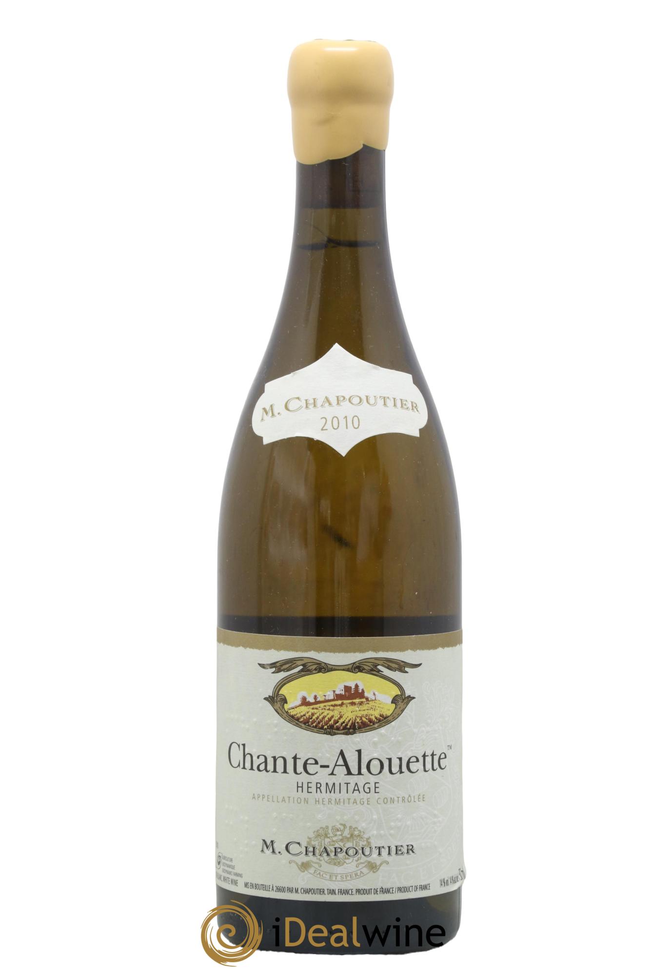 Der weiße Hermitage Chante Alouette von Chapoutier wird aus Marsanne erzeugt, von Rebstöcken, die unterhalb des gleichnamigen weißen Hauses wachsen. Die Trauben stammen von drei verschiedenen Parzellen: "Le Méal" ist ein Boden aus fluviatil-glazialen Sedimenten, "Les Murets" besteht aus Granitsplitt und "Chante-Alouette" ruht auf Löss mit einer Lehm-Kalk-Schicht. Die Vinifikation der Trauben erfolgt zu einem Drittel in neuen pièces und der Rest in Tanks. Die anschließende Reifung erstreckt sich über rund ein Jahr. Dieser außergewöhnliche Weißwein entwickelt komplexe und subtile Aromen von Quitte, Ingwer, Honig und Akazie, mit Noten von Lindenblüten. Mit seiner beachtlichen Fülle am Gaumen unterstrichen durch einen mandelartigen, langanhaltenden Abgang kann er mehrere Jahrzehnte lang aufbewahrt werden.