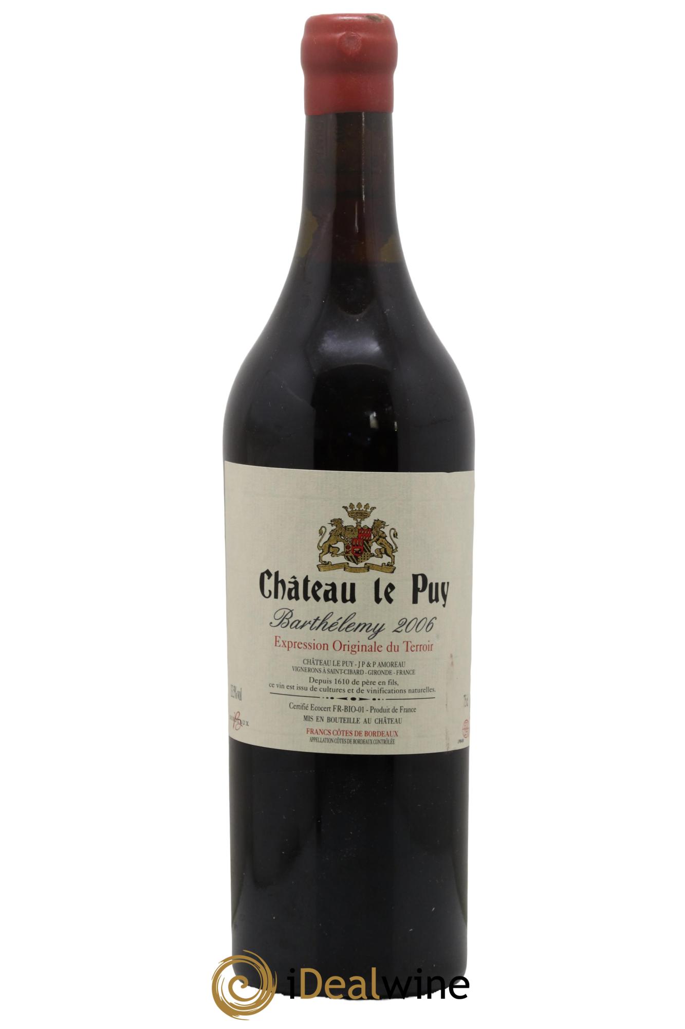 Barthélémy ist ein Parzellenwein des Weinguts Château Le Puy. Er stammt von der Parzelle „Les Rocs“, die wie ein Garten bewirtschaftet wird und zu 85 Prozent mit Merlot und zu 15 Prozent mit Cabernet Sauvignon bepflanzt ist. Das Weingut arbeitet biodynamisch; die Vinifikation ist natürlich, spontan, lang und ohne jegliche Zusätze, insbesondere ohne Schwefelzusatz. Der Wein wird dynamisiert, um den Bodensatz aufzuwirbeln. Es handelt sich um eine mit besonderer Sorgfalt produzierte Abfüllung des Weinguts. Der Ausbau in Barriquefässern (keine neuen Fässer) dauert 24 Monate lang. Anschließend wird der Wein ohne Schönung oder Filtration in Flaschen abgefüllt. Bei der Verkostung bietet der Wein Aromen von reifen Trauben sowie von roten und rosanen Früchten. Am Gaumen zeigt er sich strukturiert, tief, komplex und seidig sowie äußerst verführerisch. Dieser Wein verfügt über ein großes Reifepotenzial und passt hervorragend zu rotem Fleisch oder Wild, insbesondere wenn Pilze die Beilage sind.