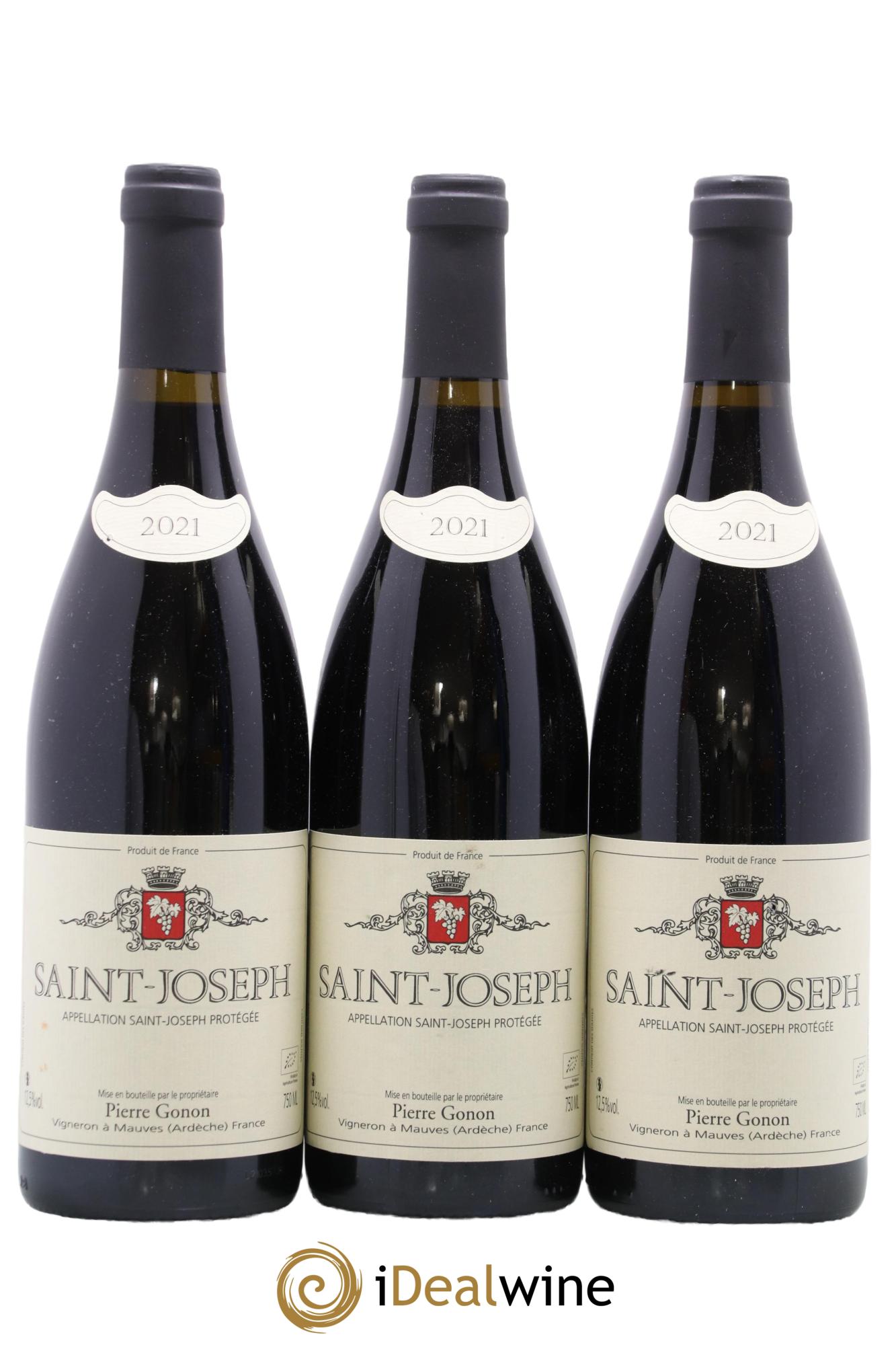 Der rote Saint-Joseph stammt von Rebstöcken, die auf den drei wichtigsten Terroirs des Weinguts wachsen. Das erste verfügt über Böden aus rotem Lehm, durchsetzt mit Kieselsteinen, und befindet sich in der Parzelle „Les Oliviers“, wo ebenfalls die Rebstöcke des weißen Saint-Joseph des Weinguts wachsen. Das zweite, das zudem in der Assemblage überwiegt, besteht aus mehreren Parzellen mit sehr granithaltigen Böden, die an das qualitativ hochwertigste Terroir der Appellation Saint-Joseph (das ihr ihren Namen gab) grenzen. Das dritte Terroir liegt in der nördlichsten Gemeinde von Saint-Jean-de-Muzols (die beiden anderen liegen in der Nähe des Dorfes Tournon). Hier wachsen die ältesten Rebstöcke des Weinguts auf Gneisboden. Bei der Weinlese werden die Trauben im Weinberg sorgfältig sortiert und anschließend in kleinen Kisten in den Weinkeller transportiert. Die Trauben der Rotweine werden zu ca. 25 Prozent entrappt und mit Naturhefen in Holz- oder Betonbehältern vinifiziert. Die Weißweine werden vollständig in Holzfässern vinifiziert. Die Brüder Gonon verzichten bei ihren Rotweinen auf eine forcierte Extraktion und beschränken sich auf Umwälzen und Überpumpen. Anschließend wird der Wein etwa zehn Monate lang in 600 Liter fassenden Demi-Muids (nicht neu) ausgebaut, bevor der Inhalt der verschiedenen Behälter kurz vor der Lese des nächsten Jahrgangs in großer Menge zusammengeführt wird. Die Rotweine werden im Laufe des Winters in Flaschen abgefüllt. Bei der Verkostung zeigen sie sich weich und komplex, mit fruchtigen, blumigen, rauchigen und würzigen Noten. Der füllige und ausgewogene Charakter sowie seine elegante Tanninstruktur machen diesen Wein zu einem Symbol für die Region.
