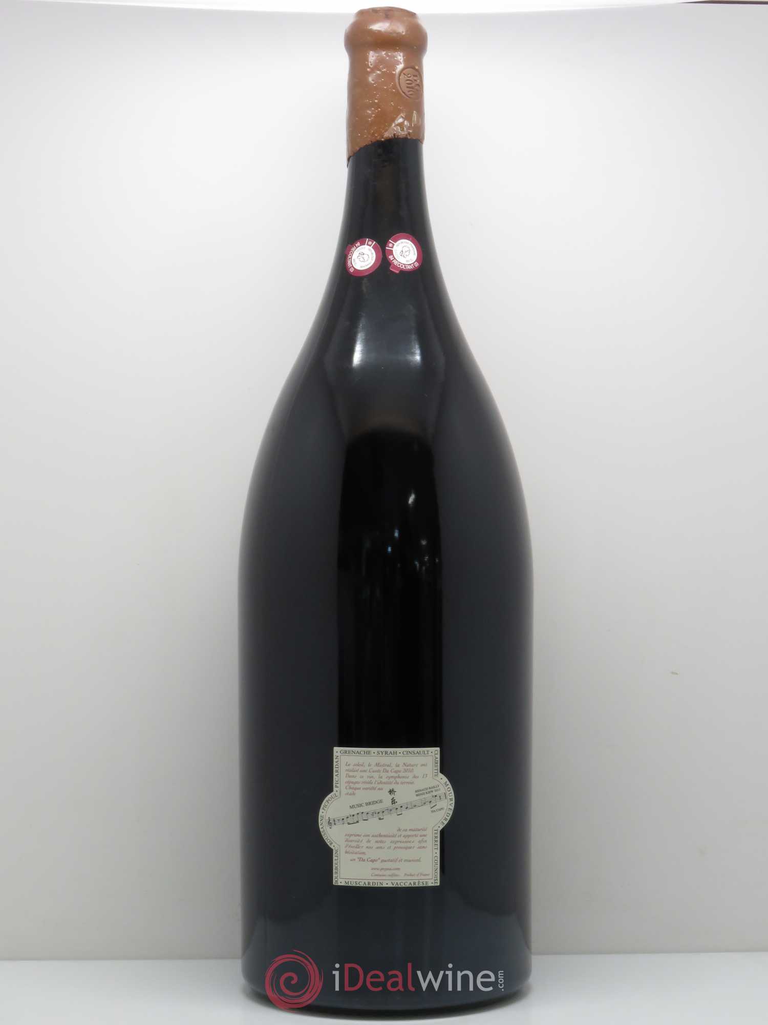 Die meisten Rebstöcke, aus deren Trauben die Cuvée Da Capo entsteht, sind um die hundert Jahre alt. Sie verteilen sich auf drei Terroirs: ein kiesiges, La Crau, ein anderes aus Rollkieseln namens Les Escondudes und schließlich Montpertuis, eine Mischung aus Kies und rotem Lehm. Zu den 70 % Grenache kommen Syrah, Mourvèdre und zahlreiche andere lokale Rebsorten. Die Lese erfolgt natürlich von Hand und die Ernte wird im Ganzen vinifiziert. Die spontane Gärung beginnt in Betontanks mit natürlichen Hefen und erfolgt ohne jegliche Temperaturkontrolle. Anschließend reifen die Weine mindestens zwei Jahre lang in 50 hl großen foudres.