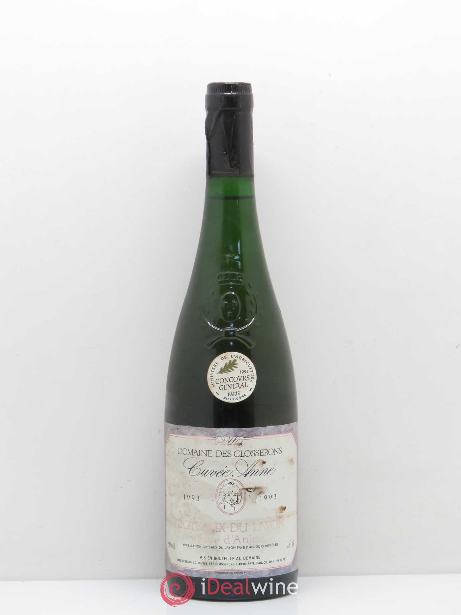 Coteaux du Layon Faye d'Anjou Cuvée Anne Domaine des Closserons (sans prix de réserve) 1993