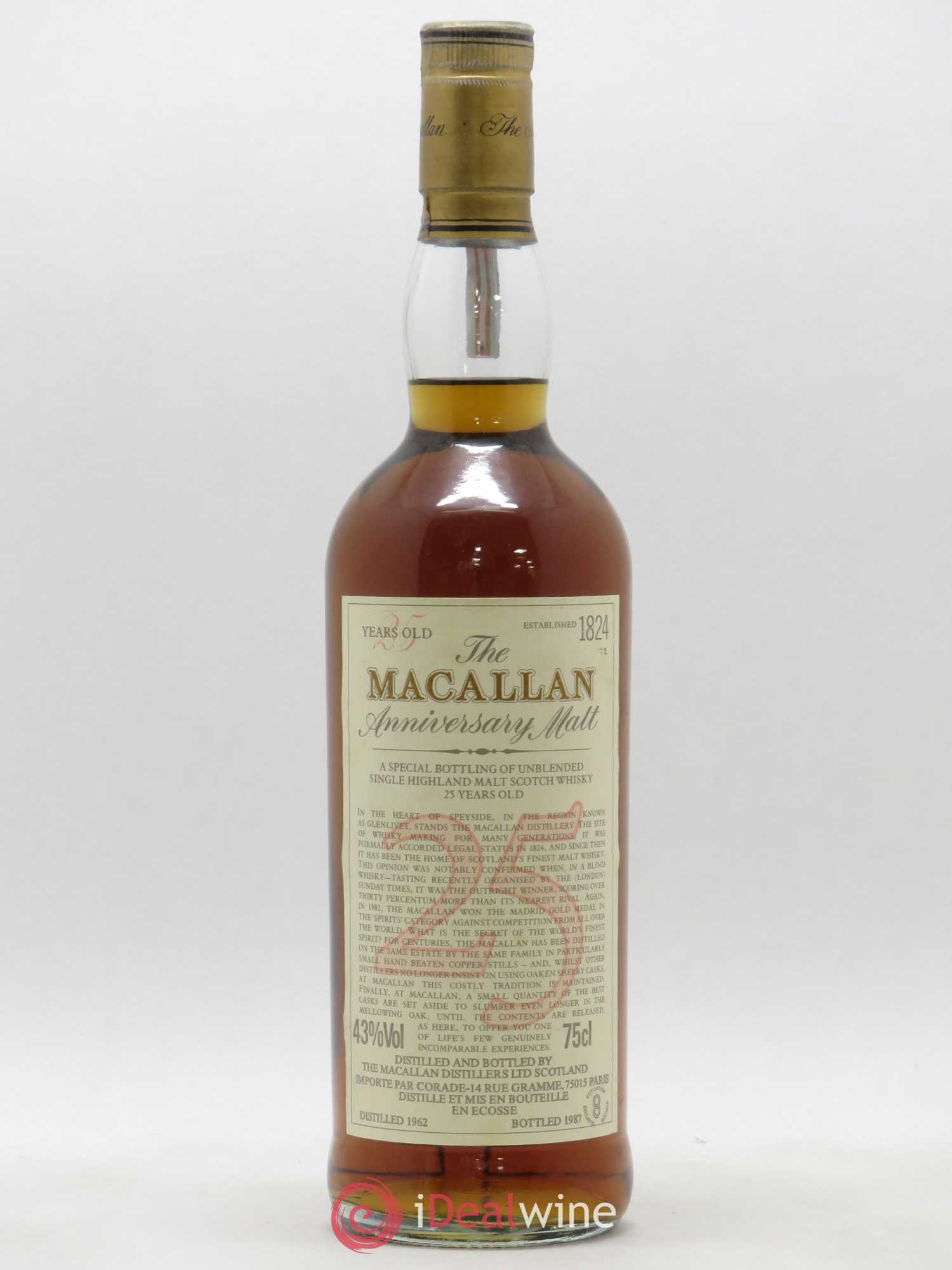 Whisky Highland Single Malt 25 ans The Macallan Anniversary Malt 1962