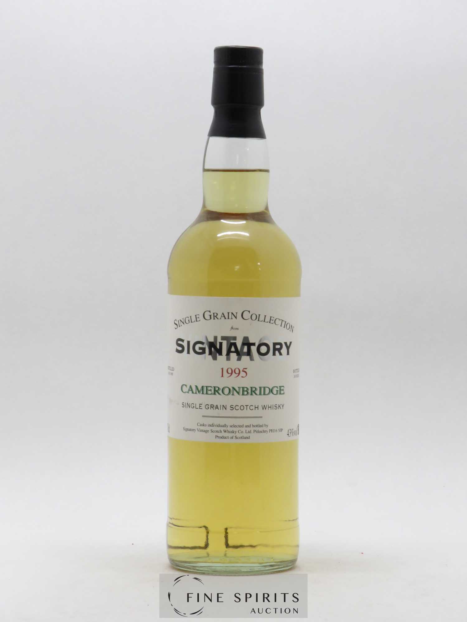 Ein Single Grain der Brennerei Cameronbridge, am 31. Januar 1995 destilliert und im Oktober 2013 abgefüllt. Eine durch den schottischen Händler Signatory Vintage für seine Serie Single Grain Collection ausgeführte Abfüllung. Signatory Vintage wurde 1988 von Andrew Symington gegründet, der seine Tätigkeit im Prestonfield House in Edinburgh begann. Dort war er für die hoteleigene Auswahl der Whiskyfässer zuständig. 2002 erwirbt er die Brennerei Edradour in Pitlochry in den Highlands. Er verlegt auch Signatory Vintage dorthin, deren Lager nun der Brennerei gegenüberliegen.