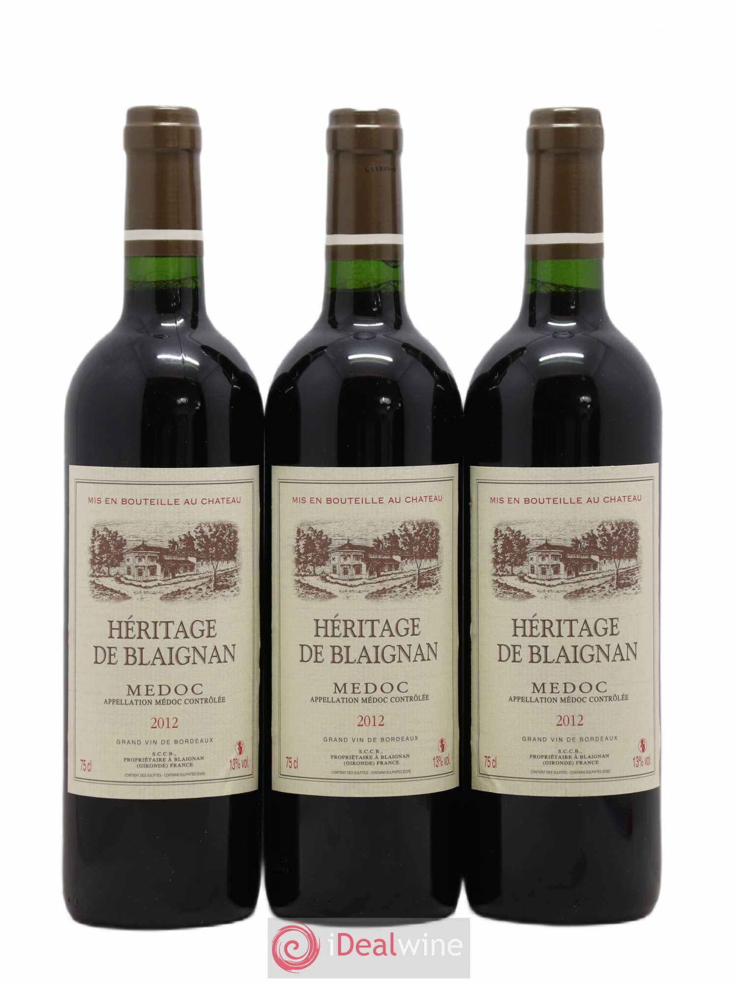 Médoc Chateau Heritage de Blaignan (sans prix de réserve) 2012 - Posten von 3 Flaschen - 0