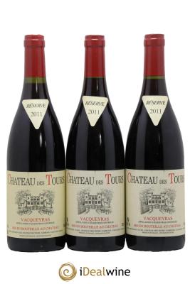 Das Château des Tours, in Sarrians in der Appellation Vacqueyras gelegen, gehört seit 1997 dem berühmten Emmanuel Reynaud, Eigentümer des legendären Château Rayas in Châteauneuf-du-Pape und des Château Fonsalette. Dieses Weingut produziert unter dem Namen Château des Tours auf 40 Hektar einen roten Vacqueyras (80 % Grenache und 20 % Syrah), einen roten Côtes-du-Rhône (65 % Grenache, 15 % Cinsault und 20 % Syrah) und einen weißen Côtes-du-Rhône (100 % Grenache). Unter dem Namen Domaine de Tours wird hier außerdem ein roter Vaucluse-Landwein (Grenache, Counoise, Syrah, Cinsault, Merlot und diverse andere Rebsorten) und ein weißer Vaucluse-Landwein (100 % Clairette) hergestellt. Und zu guter Letzt findet man hier auch einen Rosé-Tafelwein namens „Parisy“, der aus Grenache und Cinsault zusammengestellt ist. In jedem Fall wird den roten und weißen Grenache-Trauben alle Ehre gemacht. Der Weinbau ist von extremer Sorgfalt geprägt und bei der Lese werden große Risiken eingegangen. Tatsächlich werden die Trauben so reif wie möglich geerntet. Dieses Weingut produziert Weine auf höchstem Niveau: Ihre Farbe ist wenig intensiv, aber dennoch sind die Weine extrem tiefgründig, schlank, fruchtig und außergewöhnlich ausgewogen. Besonders bekannt und nachgefragt sind sie für ihre Komplexität und ihr Reifepotenzial. Wissenswert ist außerdem, dass Flaschen vom einfachen Landwein bis zum Vacqueyras erst nach einigen Jahren der Lagerung am Weingut verkauft werden.