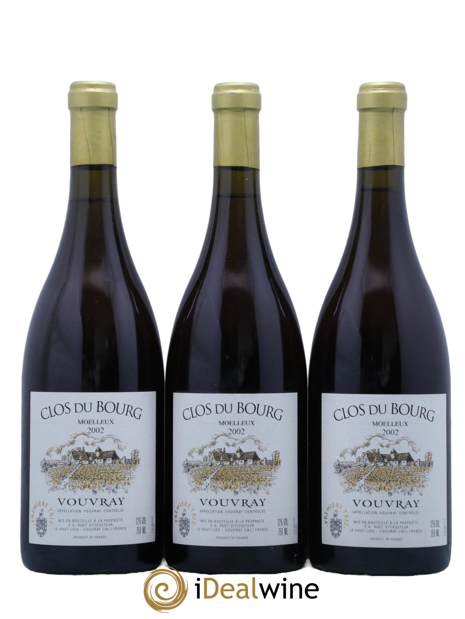 Vouvray Clos du Bourg Moelleux 1ère trie Domaine Huet  2002 - Lot of 3 bottles - 0
