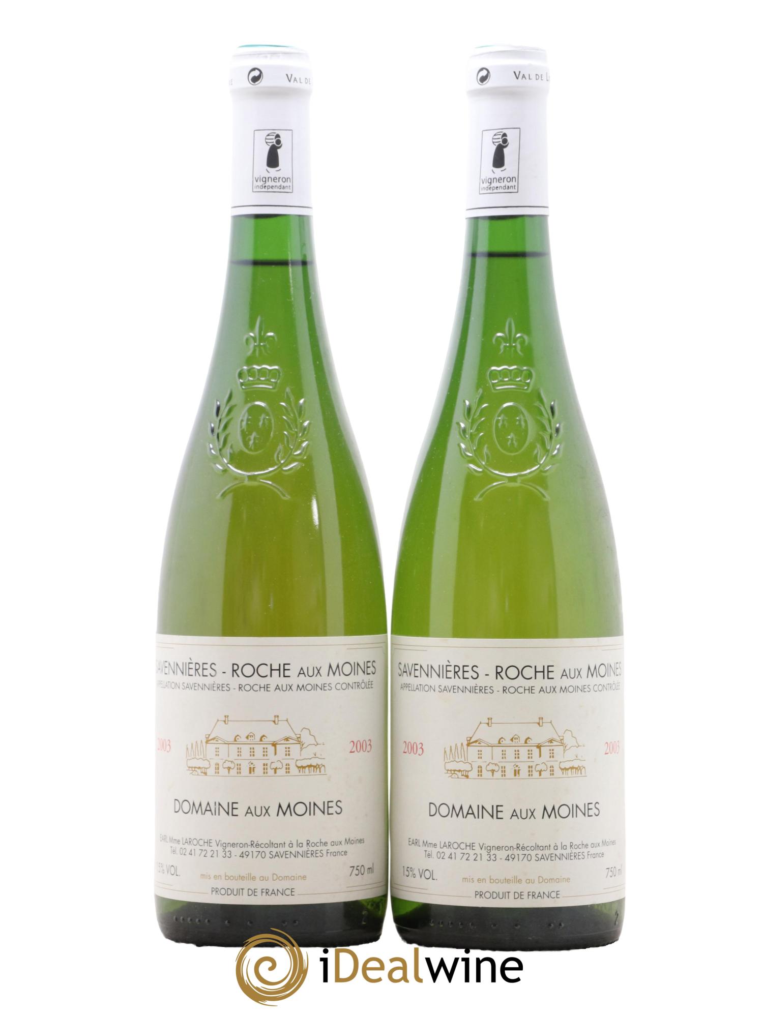 Quantity: 2 bottlesObservation: 2 NormalLevel: 2 NormalOrigin: private individualRecoverable VAT: noRegion: Loire ValleyAppellation: Savennières Roche aux MoinesOwner: Domaine aux Moines
