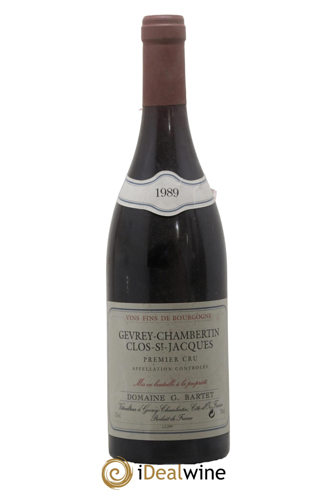 Home / Buy wine / Burgundy / Gevrey-Chambertin 1er Cru Clos Saint Jacques Domaine Bartet 1989 - Lot of 1 bottle