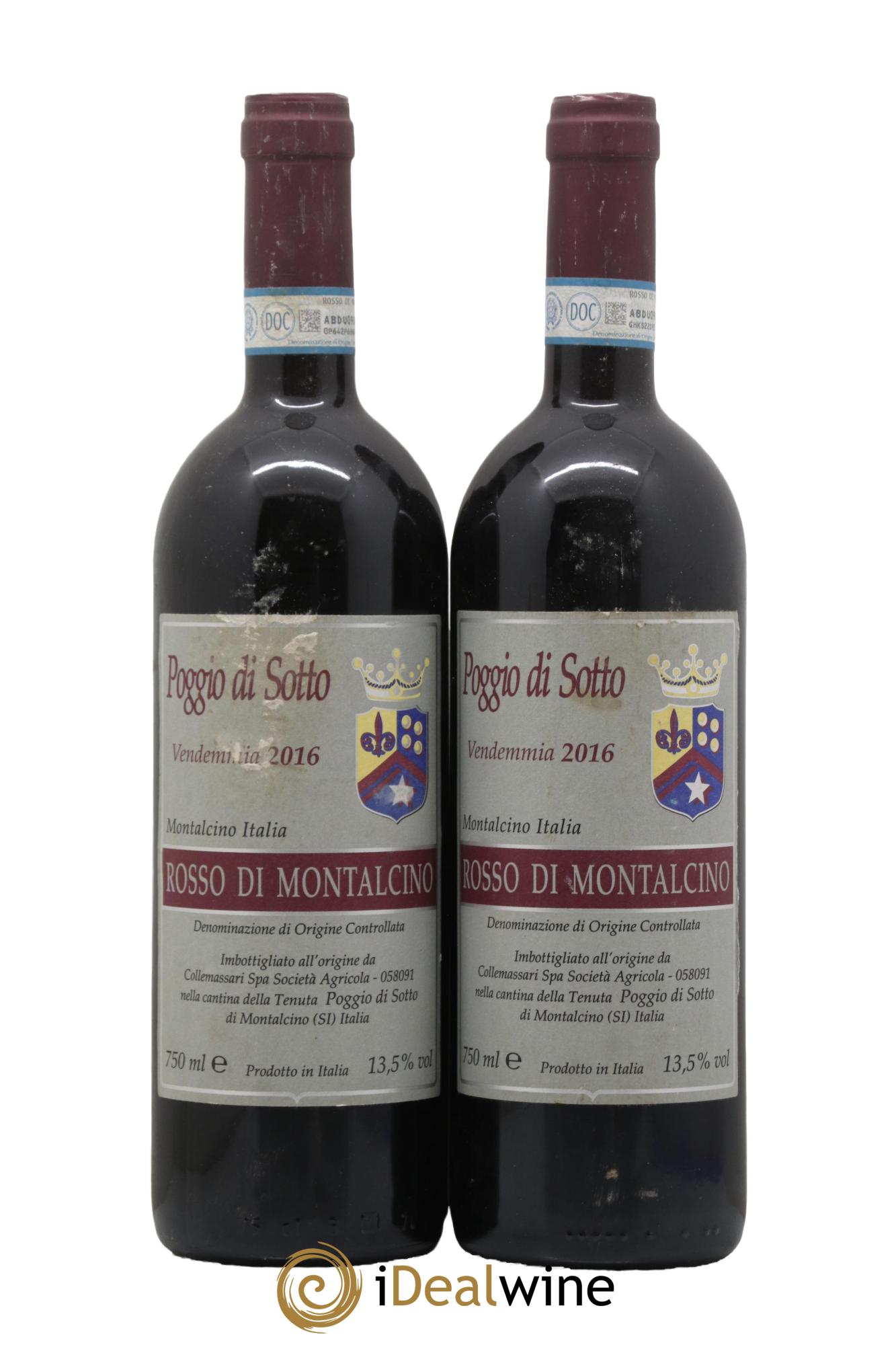 Quantity: 2 bottlesObservations: 2 Slightly marked labels, 2 Slightly stained labelsLevel: 2 NormalOrigin: private individualRecoverable VAT: noRegion: TuscanyAppellation: Rosso di MontalcinoClassification: DOCOwner: Poggio di Sotto