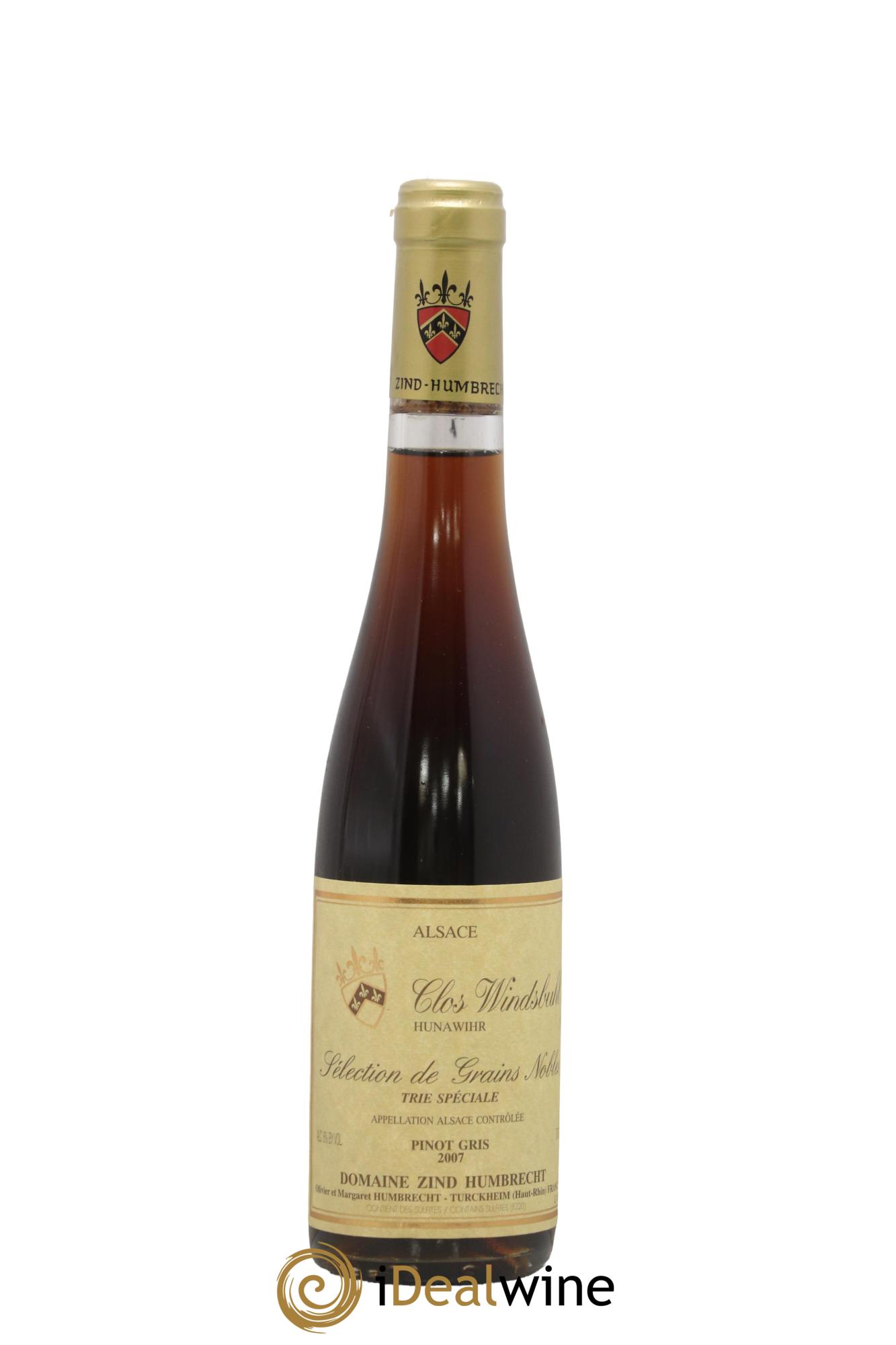 Quantity: 1 half-bottleObservation: 1 Marginally marked labelLevel: 1 NormalOrigin: private individualRecoverable VAT: noRegion: AlsaceAppellation: Alsace Pinot GrisOwner: Zind-Humbrecht (Domaine)