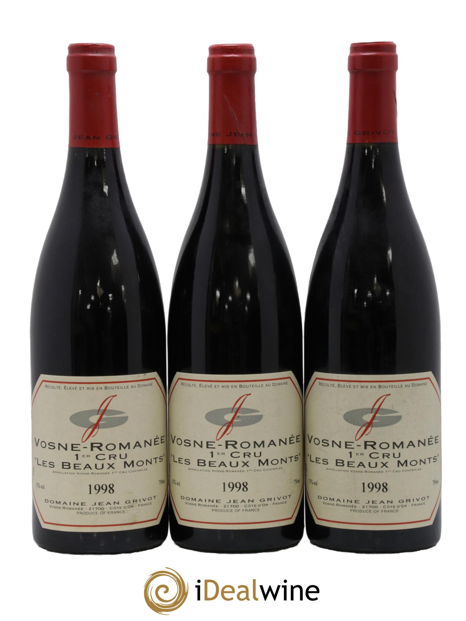 Vosne-Romanée 1er Cru Les Beaux-Monts Jean Grivot 1998 - Lot of 3 bottles - 0
