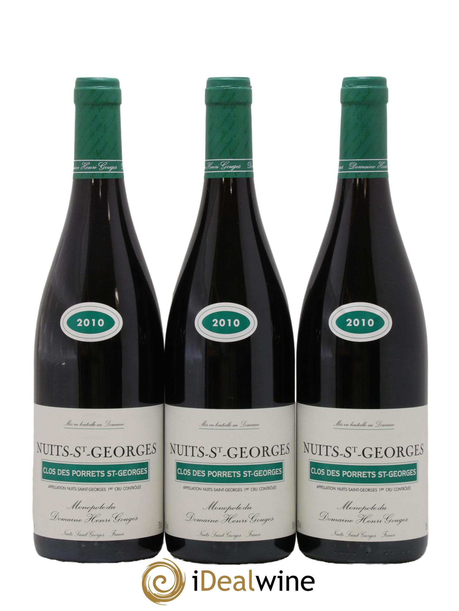 Nuits-Saint-Georges 1er Cru Clos des Porrets St Georges Henri Gouges 2010 - Lot of 3 bottles - 0