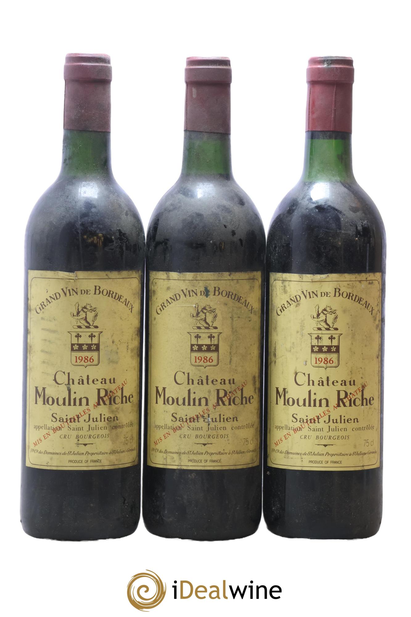 Château Moulin Riche 1986 - Lot of 3 bottles - 0