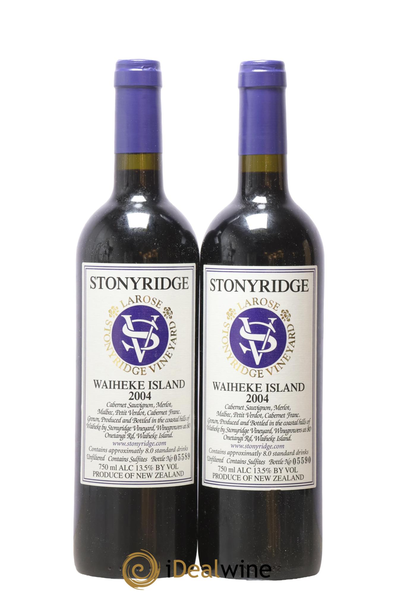 Home / Buy wine / New Zealand / Nouvelle-Zelande Waiheke Island Larose Stonyridge Vineyard 2004 - Lot of 2 bottles