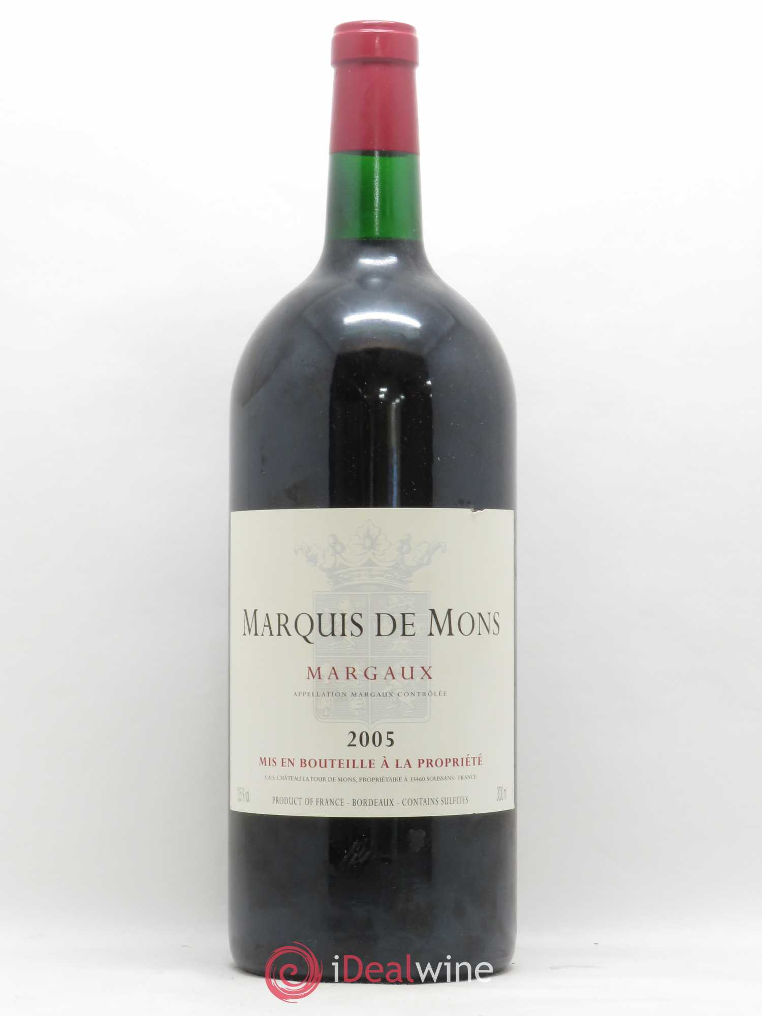Marquis de Mons is the second wine of the Margaux estate La Tour de Mons. A blend of Merlot (the dominant varietal), Cabernet-Sauvignon and Petit-Verdot grapes that are hand harvested and sorted rigorously. Parcel by parcel vinifications in thermoregulated stainless steel and an elevage of 12 months in oak barriques ensure that this wine is charming in its youth and after a decade or so in the cellar. The nose is marked by fruit that is also apparent on the palate. This is a generous and opulent wine with fie tannins. Pair with meats served with a sauce.