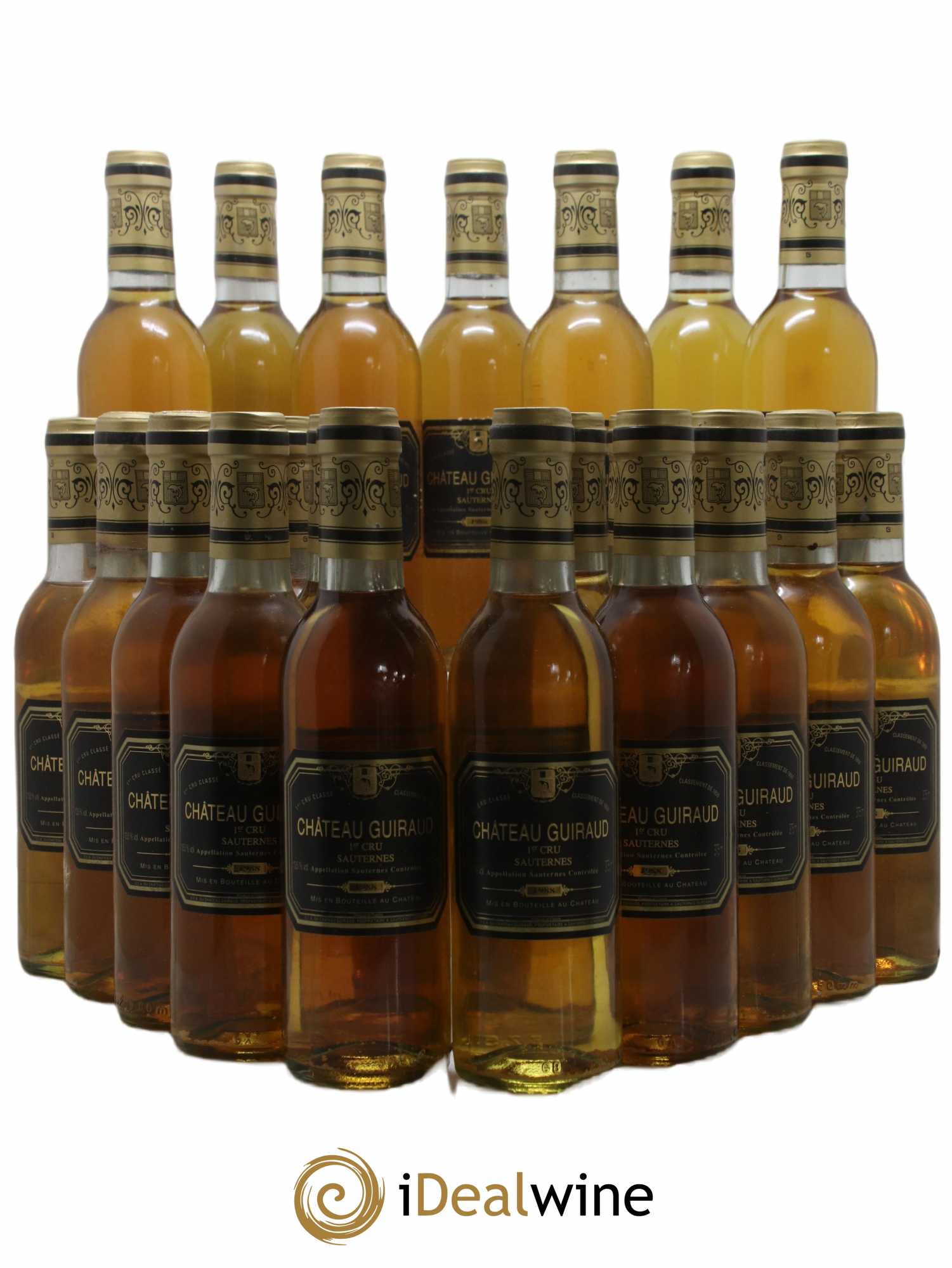 Quantity: 23 half-bottlesObservations: 23 Marginally marked labels, 3 Slightly unstuck labels, 23 Slightly corroded capsulesLevels: 10 Normal, 10 Low neck, 3 Slightly lowOrigin: professionalRecoverable VAT: yesRegion: BordeauxAppellation: SauternesClassification: Premier Grand Cru ClasséOwner: Château Guiraud