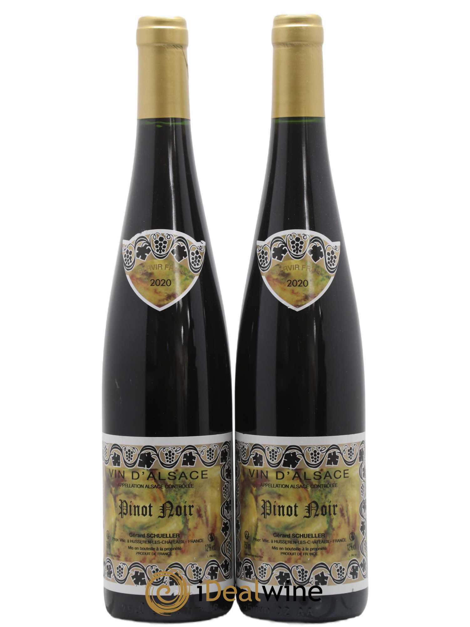 Quantity: 2 bottlesObservations: 2 Marginally marked labels, 2 Marginally torn labelsLevel: 2 NormalOrigin: private individualRecoverable VAT: noRegion: AlsaceAppellation: Alsace Pinot NoirOwner: Gérard Schueller (Domaine)