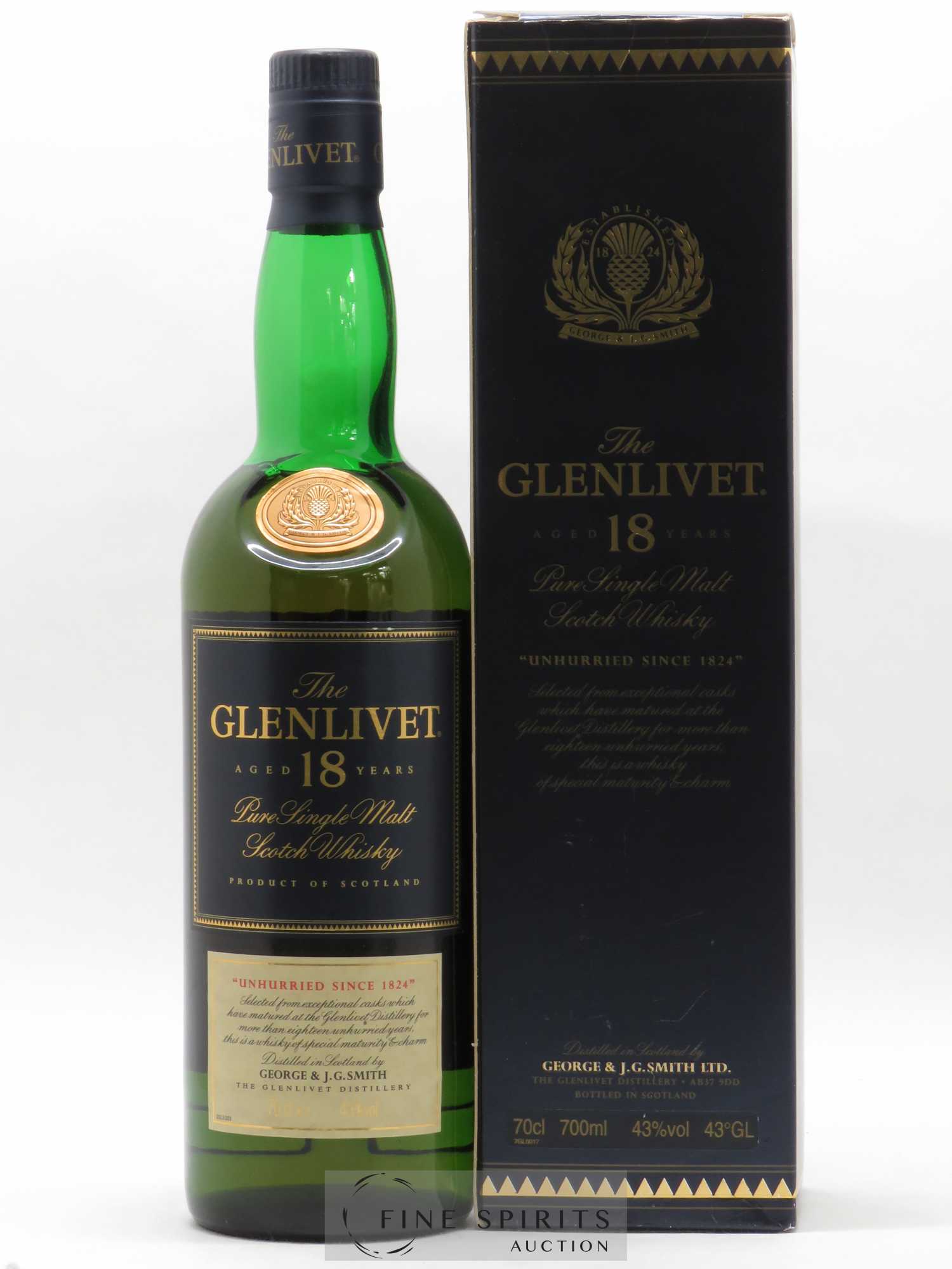 Glenlivet 18 years Of. two-part label unhurried since 1824