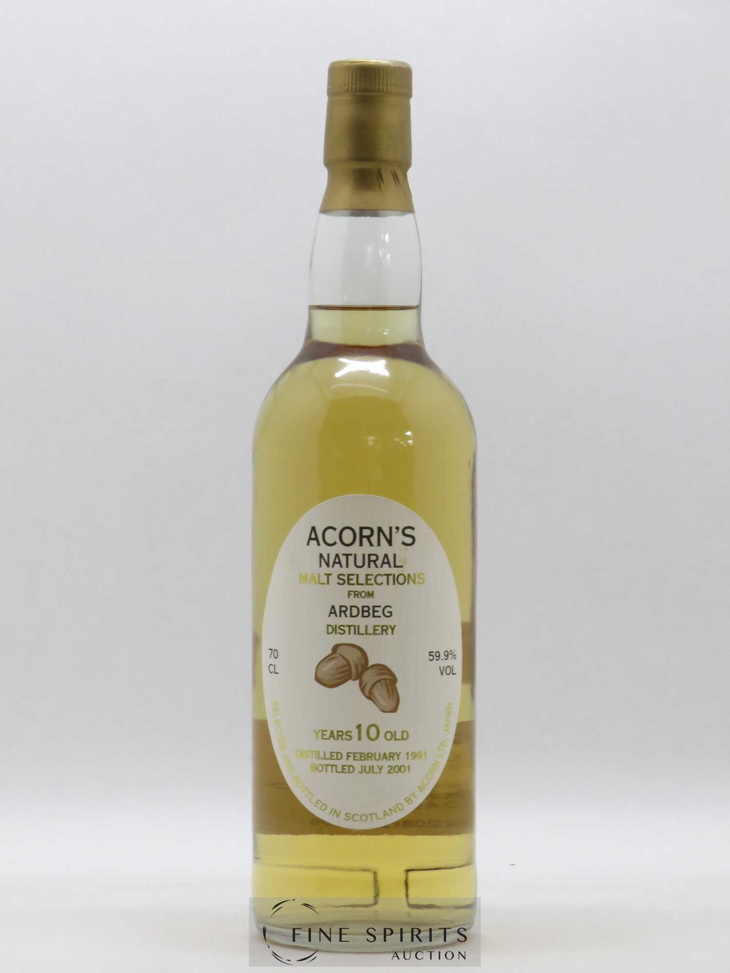 An Ardbeg 10 year old distilled in 1991 and bottled at cask strength in 2001 for the Natural Malt Selection by Acorn, a Japanese independent bottler based in Sakado, in Saitama Prefecture. Acorn was founded in 1996 by Seishi Tsuta, a former employee of Oddbins in the United Kingdom who also spent ten years working for a Japanese whisky and wine specialist. The business really began the following year and the first bottlings were released in 1999. In 2014, Tsuta opened the Whisky Plus store in Toshima (Tokyo).
