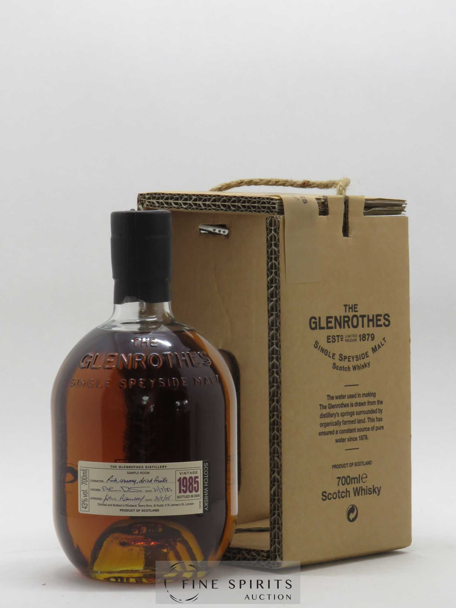 A single malt form the Glenrothes distillery distilled in 1985 and bottled in 1997. Although the name of the London-based independent bottler Berry Bros & Rudd appears on the label, the company owns only the brand and not the distillery, which is today part of the Edrington group.