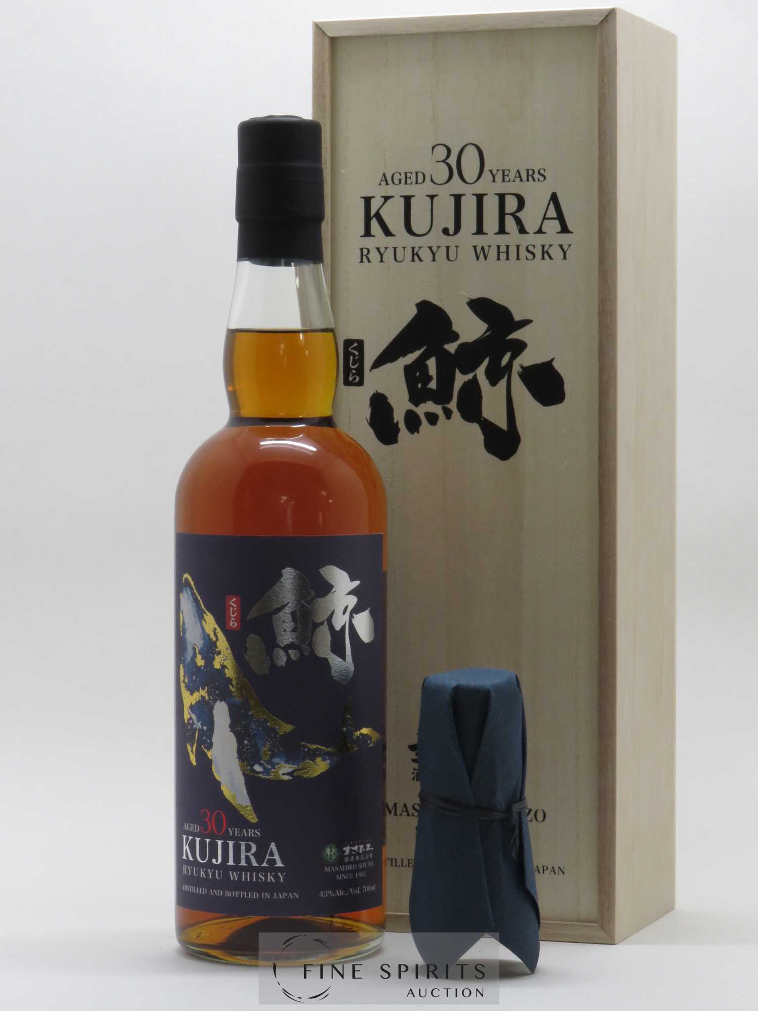 Kujira is a grain whisky produced at the Shinzato distillery from Indica and black Koji rice, like awamori, a spirit produced in Okinawa. It has been aged for 30 years in sherry, bourbon and new white oak casks.